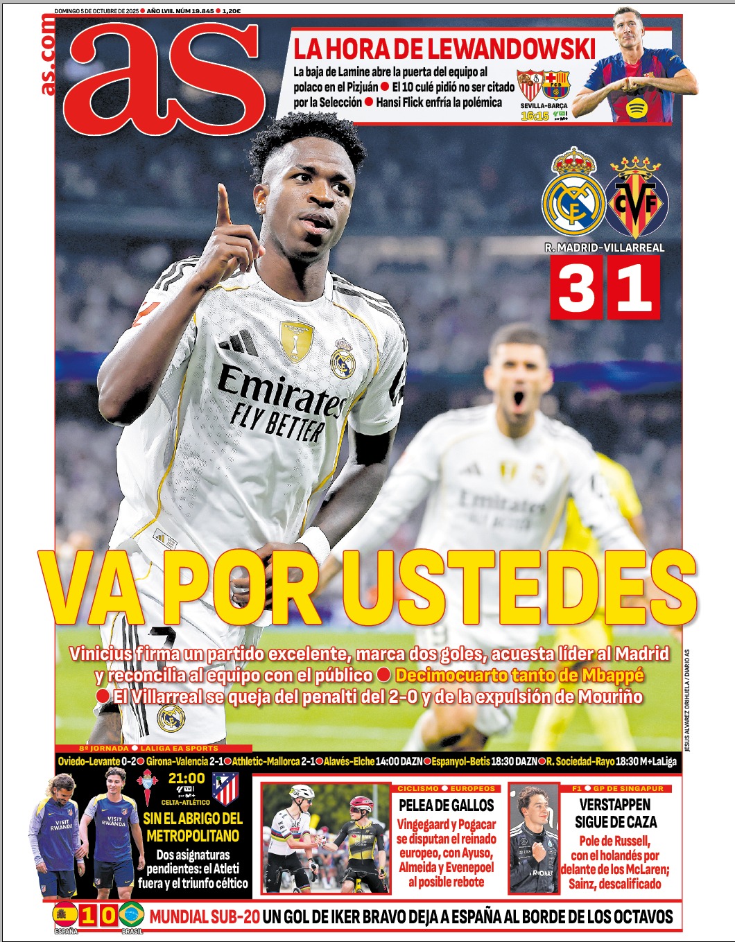 El Real Madrid - Villarreal acapara las portadas de la prensa deportiva