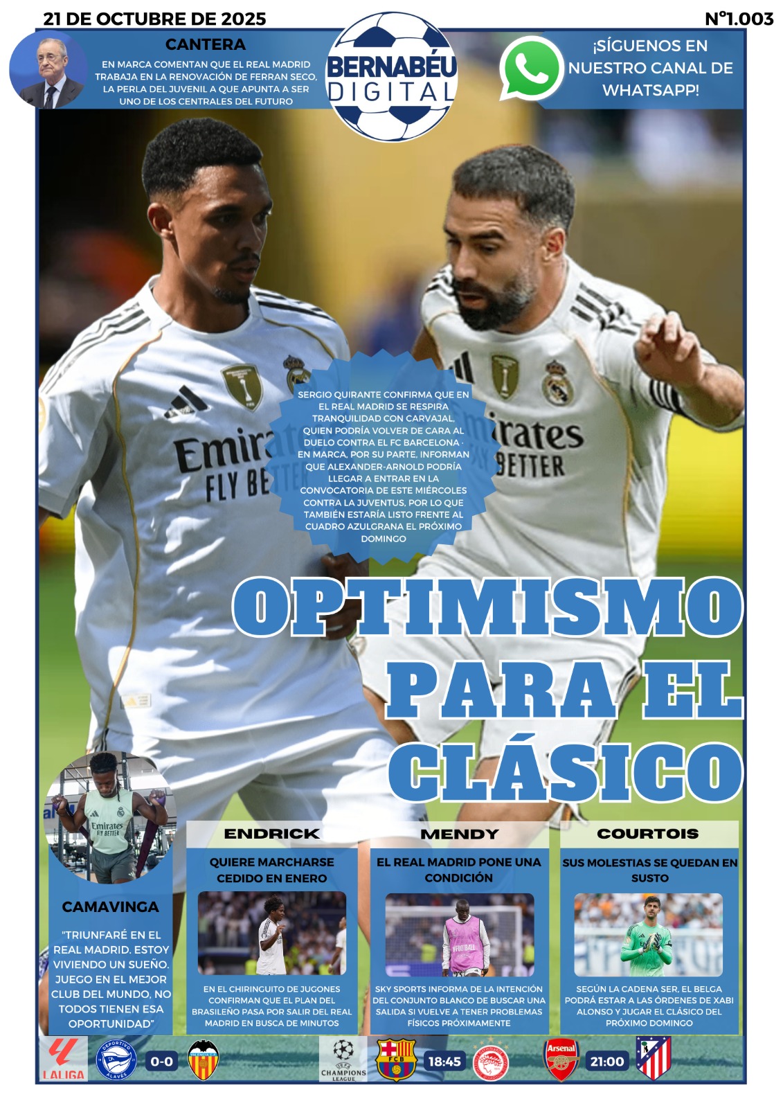 En la portada BD de este martes destacamos la fecha de regreso tanto de Alexander-Arnold como de Carvajal, quienes apuran sus opciones de llegar al clásico de este fin de semana.