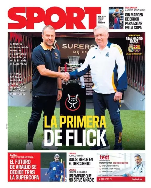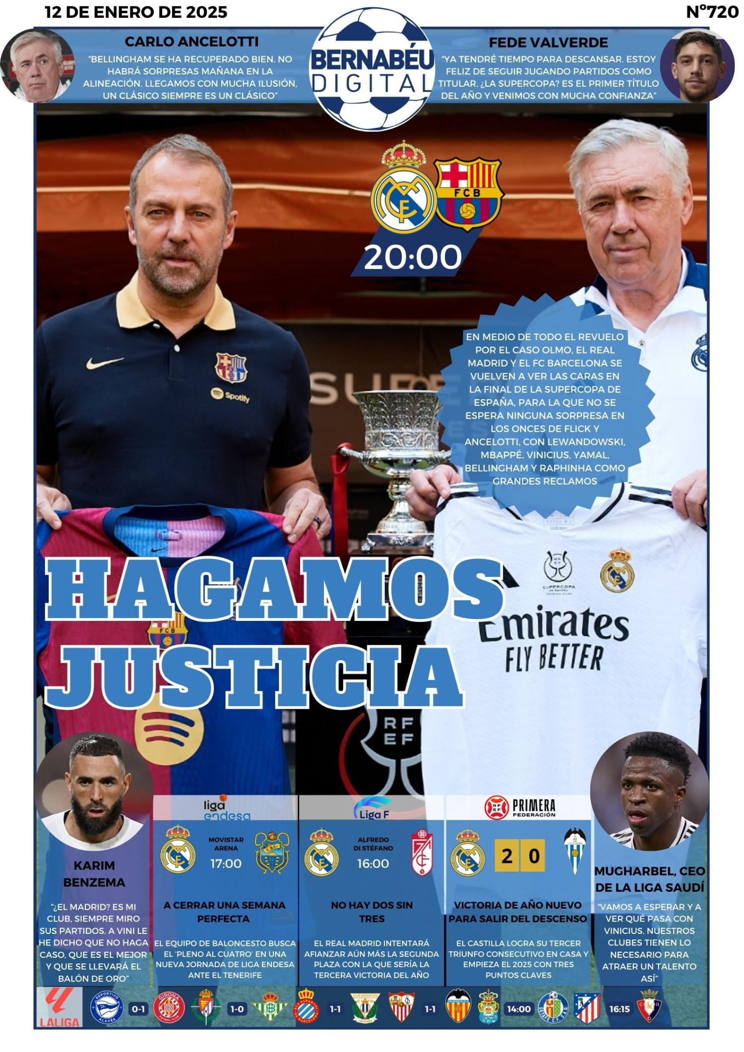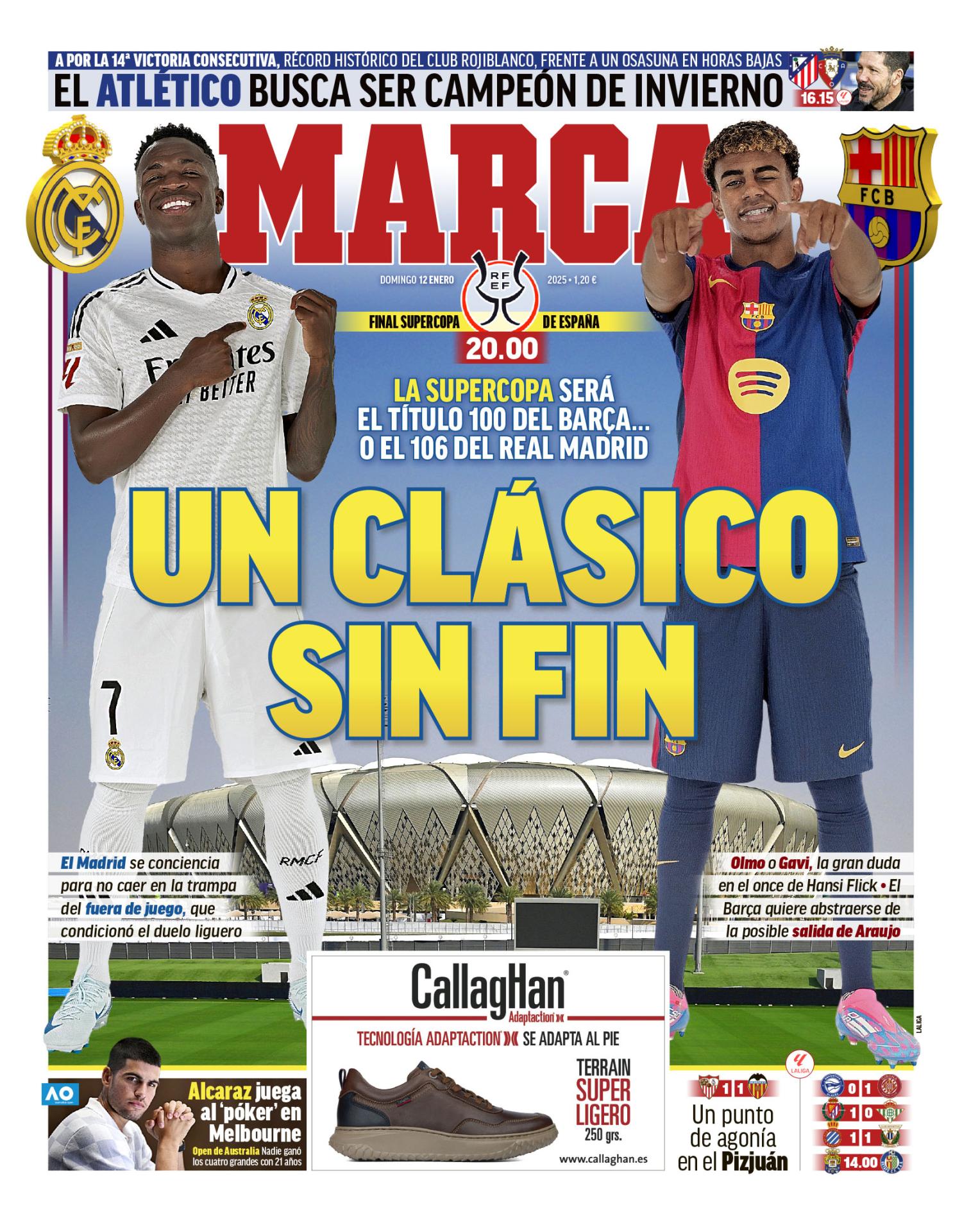 Las portadas deportivas de este 12 de enero de 2025 se centran en la final de la Supercopa de España entre el Real Madrid y el FC Barcelona.