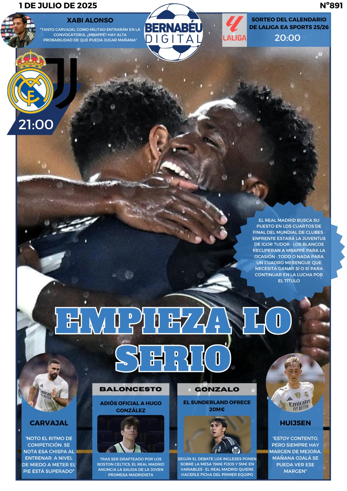 En la portada BD de este martes destacamos toda la previa del partido de octavos de final del Mundial de Clubes entre el Real Madrid y la Juventus. Asimismo, destacamos las palabras de Carvajal, Xabi y Huijsen, la oferta por Gonzalo, el sorteo del calendario liguero y la salida de Hugo González.