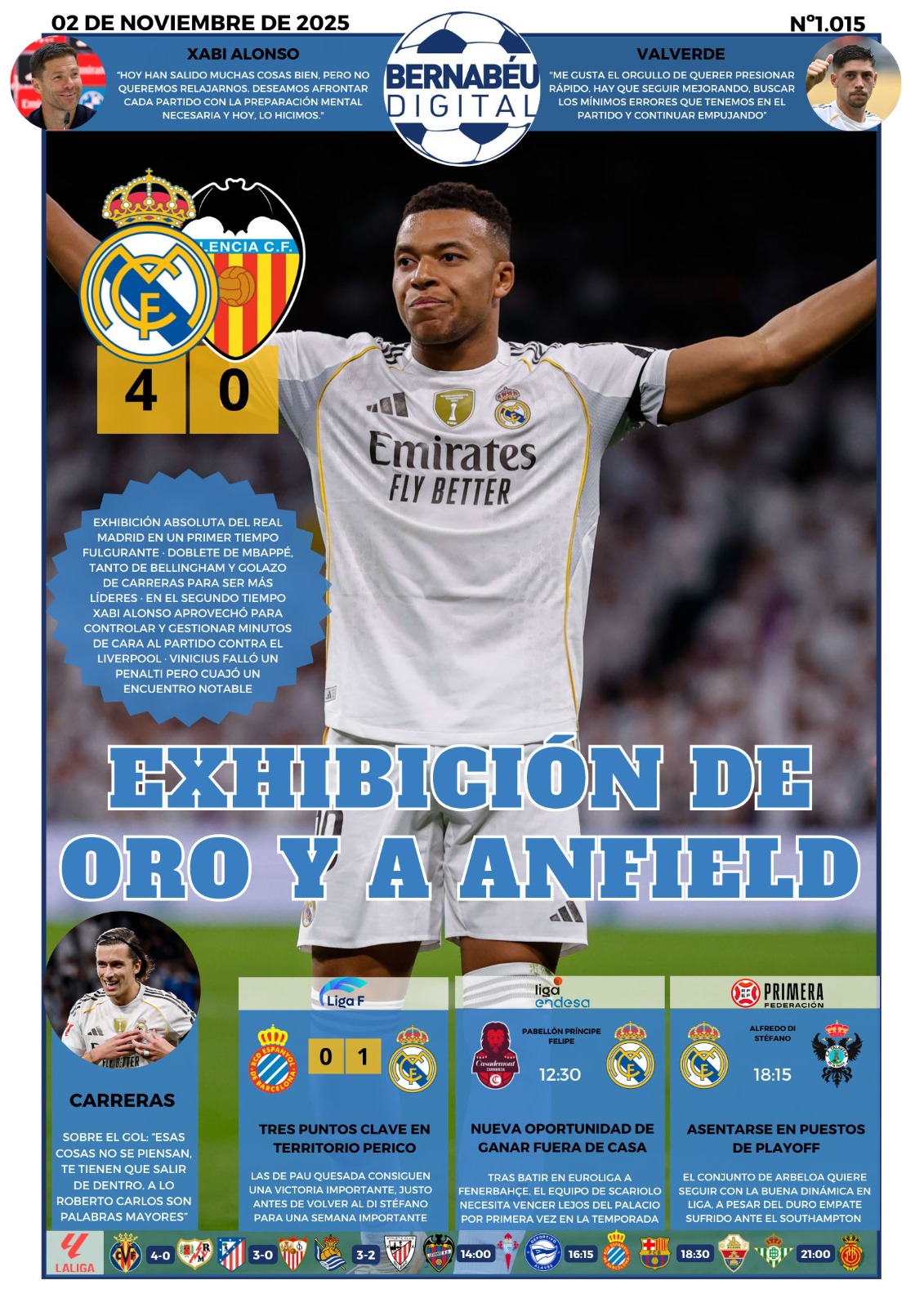 Bernabéu Digital destaca en su portada BD la exhibición y triunfo del Real Madrid ante el Valencia.