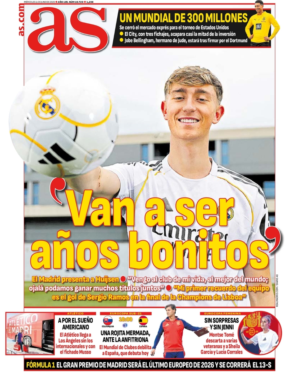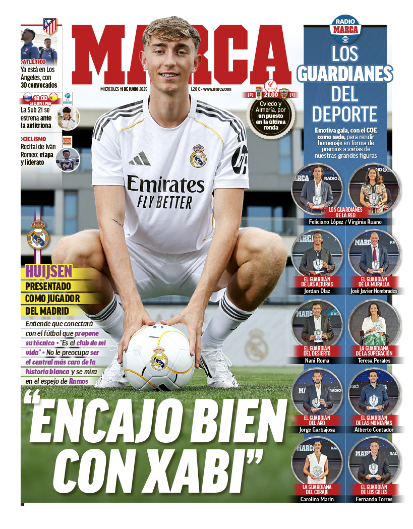 Dean Huijsen y sus primeras declaraciones como jugador del Real Madrid copan las portadas deportivas de este miércoles 11 de junio de 2025.
