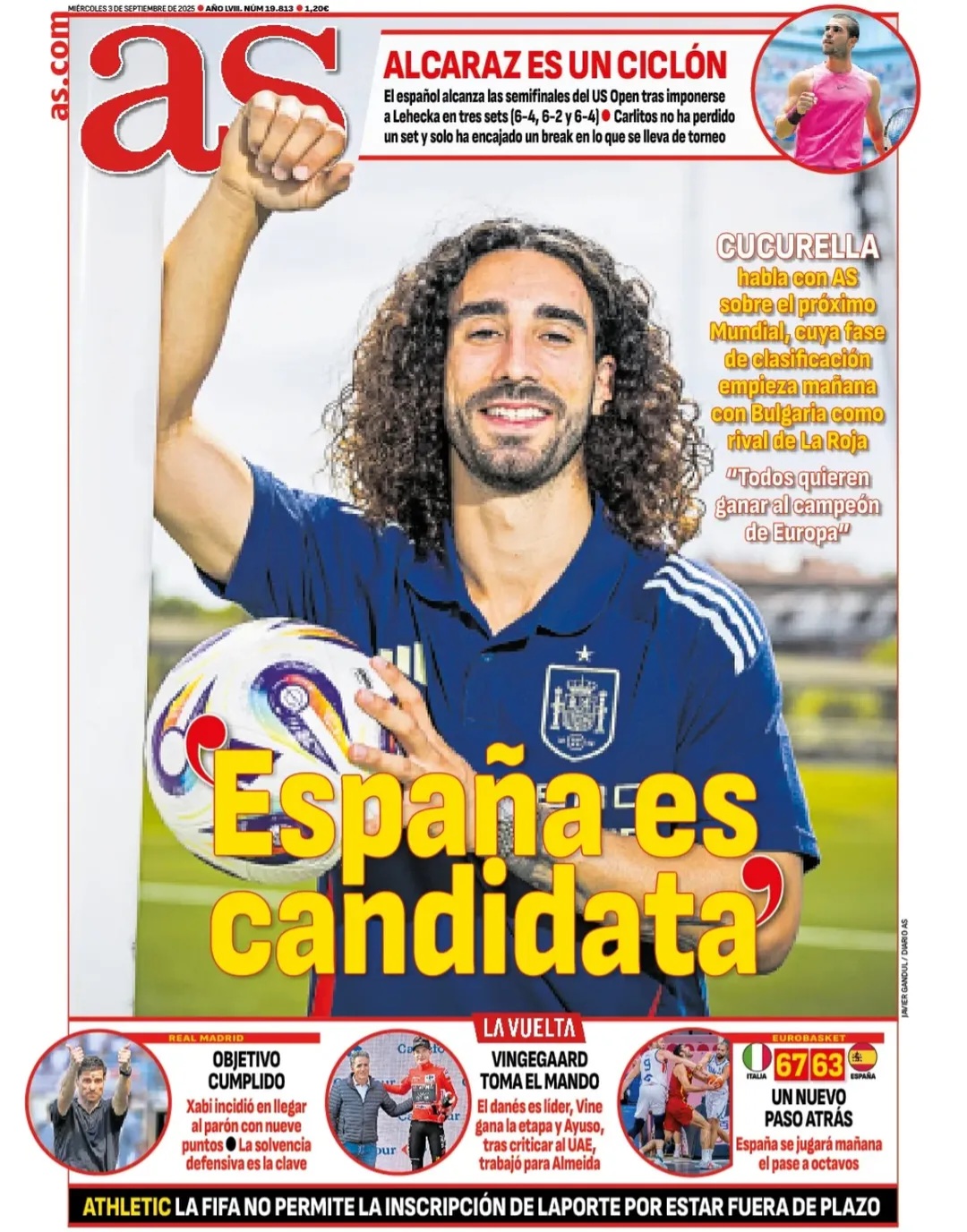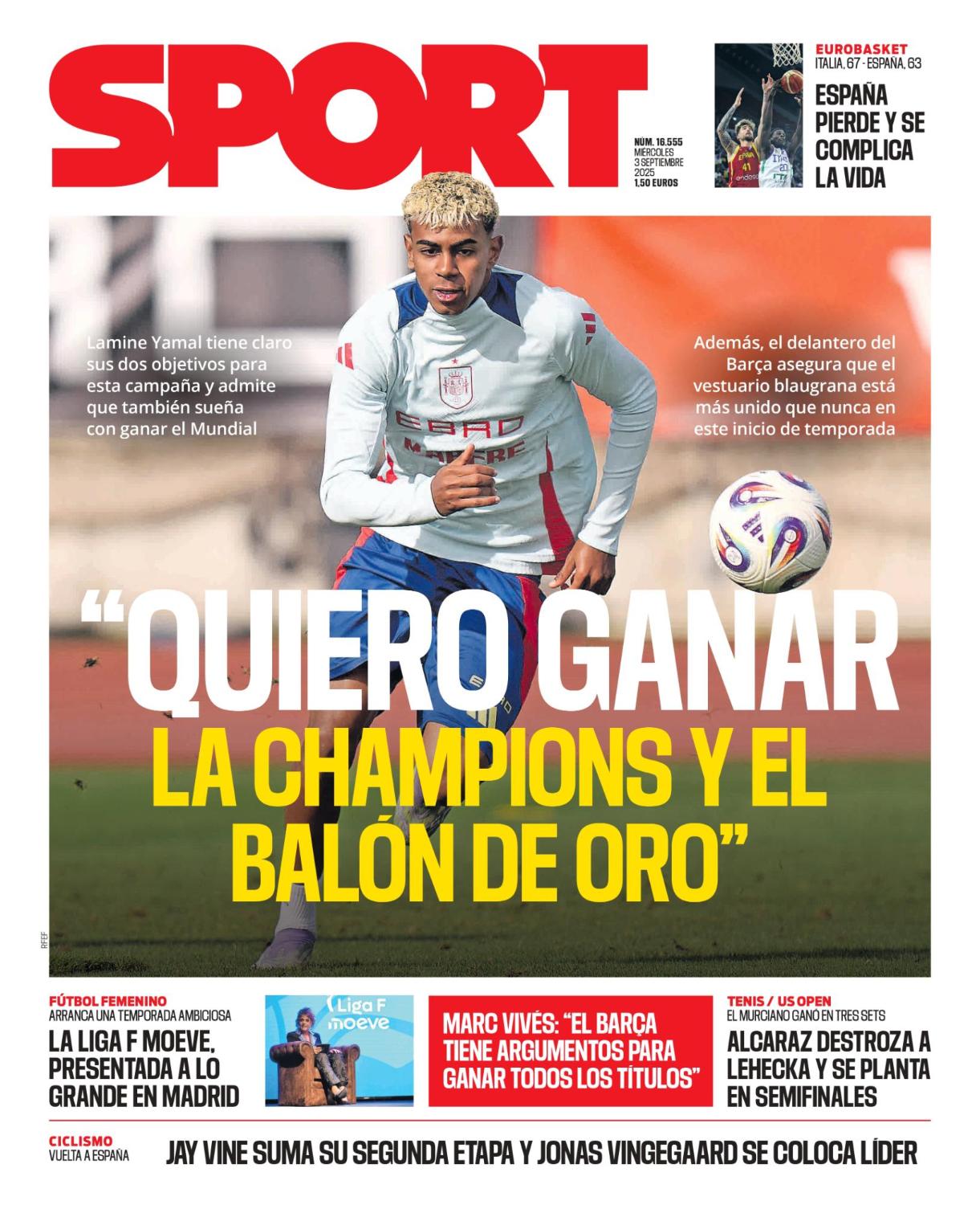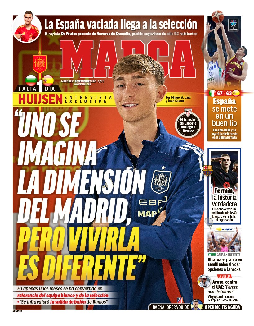 Huijsen, Cucurella, Lamine Yamal y Carvajal protagonizan las portadas deportivas de este miércoles 3 de septiembre.