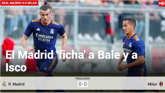 El diario Marca destaca las actuaciones de Gareth Bale y de Isco en el encuentro entre el Real Madrid y el AC Milan: "El Madrid 'ficha' a Bale y a Isco". Ambos futbolistas fueron titulares, y el galés fue protagonista al provocar un penalti y fallarlo él mismo. Isco jugó hasta el minuto 84.