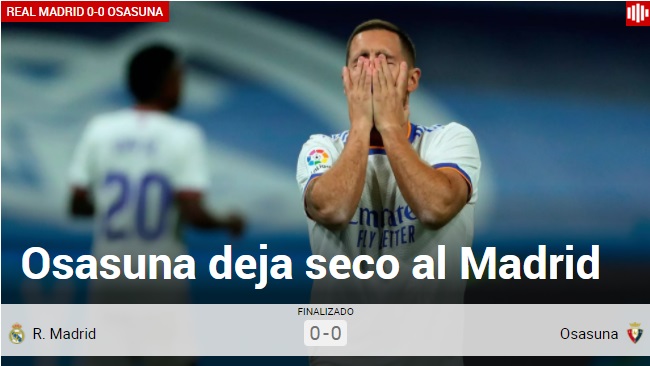 El diario Marca destaca el trabajo del Osasuna como la clave del partido para dejar al Real Madrid sin la victoria. Los de Ancelotti no pudieron pasar del empate a cero a pesar de haberlo intentado durante los 90 minutos. El planteamiento del conjunto rojillo anulo los numerosos intentos que realizó el conjunto blanco, que no consiguió superar a la defensa visitante.