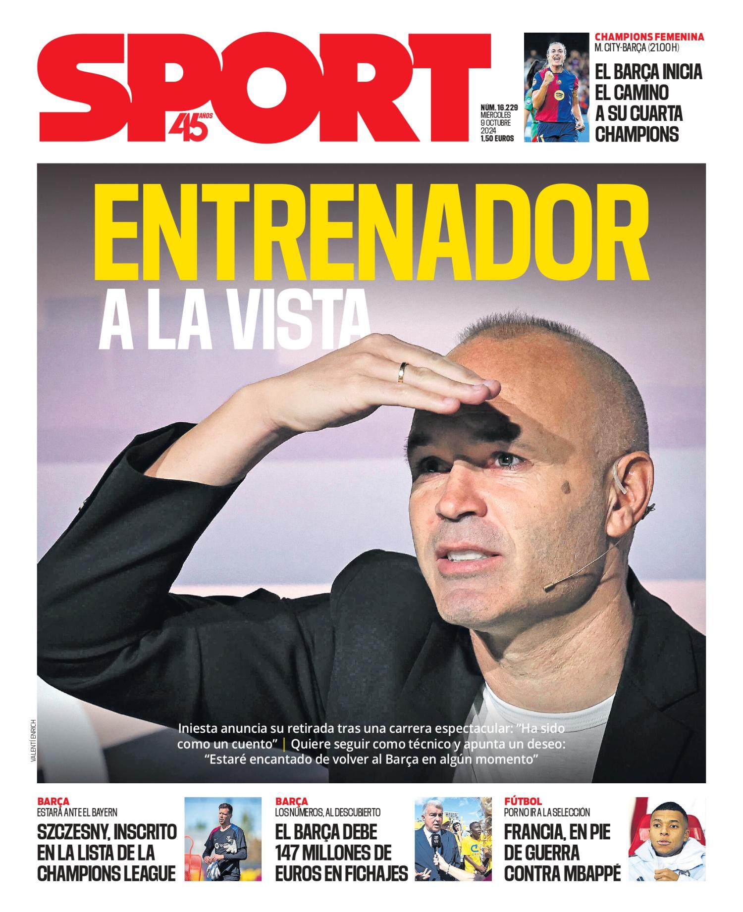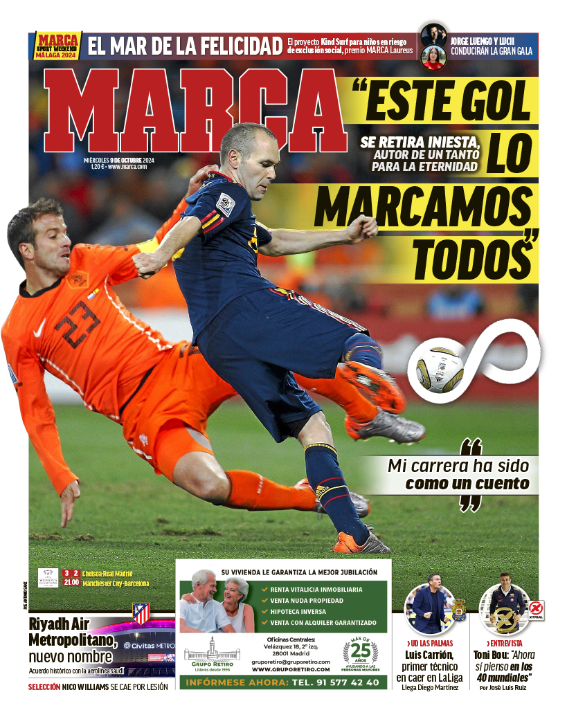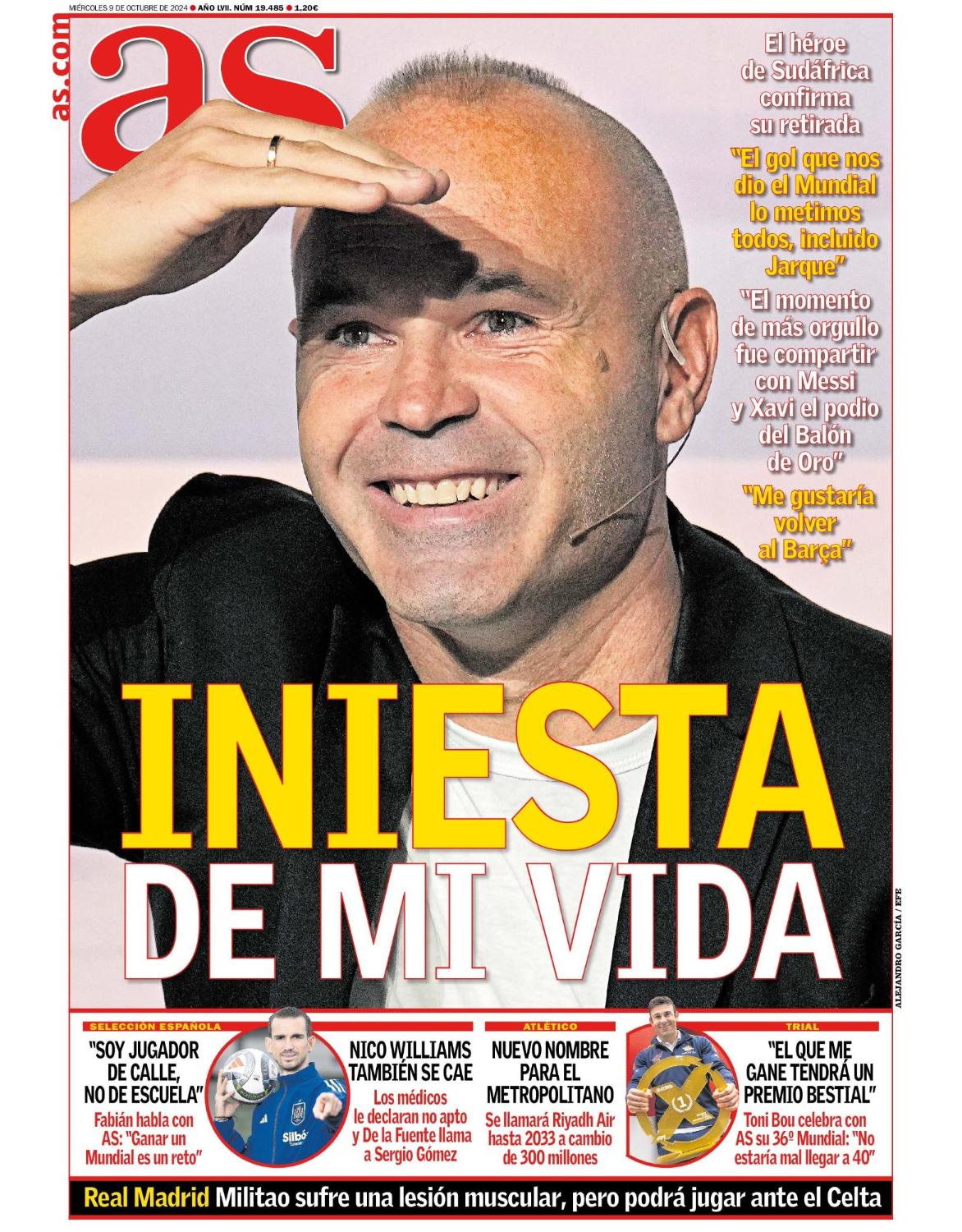 Iniesta, protagonista de las portadas deportivas del 9 de octubre de 2024