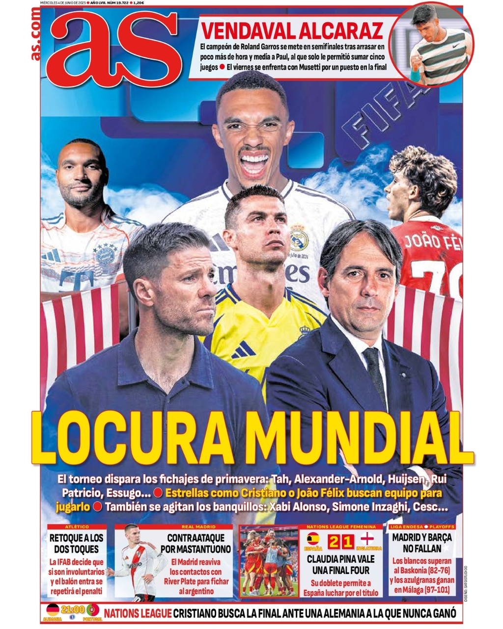 Isco, Mastantuono y más protagonistas en las portadas del 4 de junio de 2025
