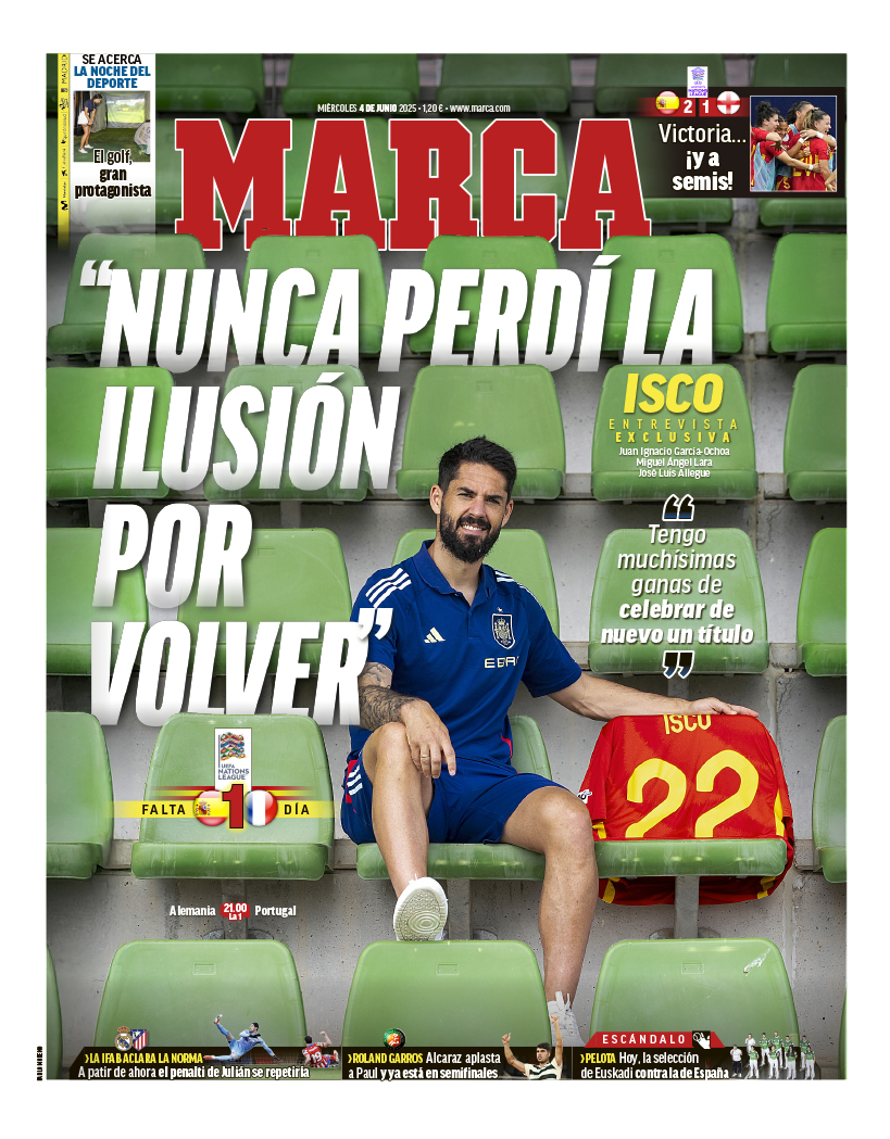 Isco, Mastantuono y más protagonistas en las portadas del 4 de junio de 2025.
