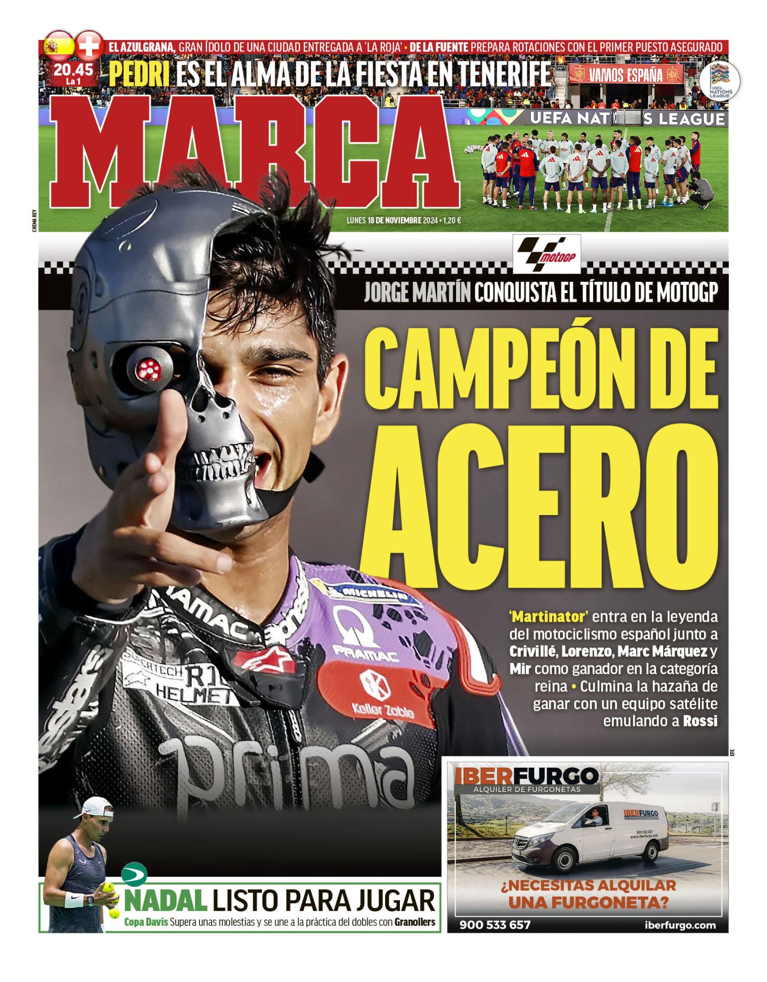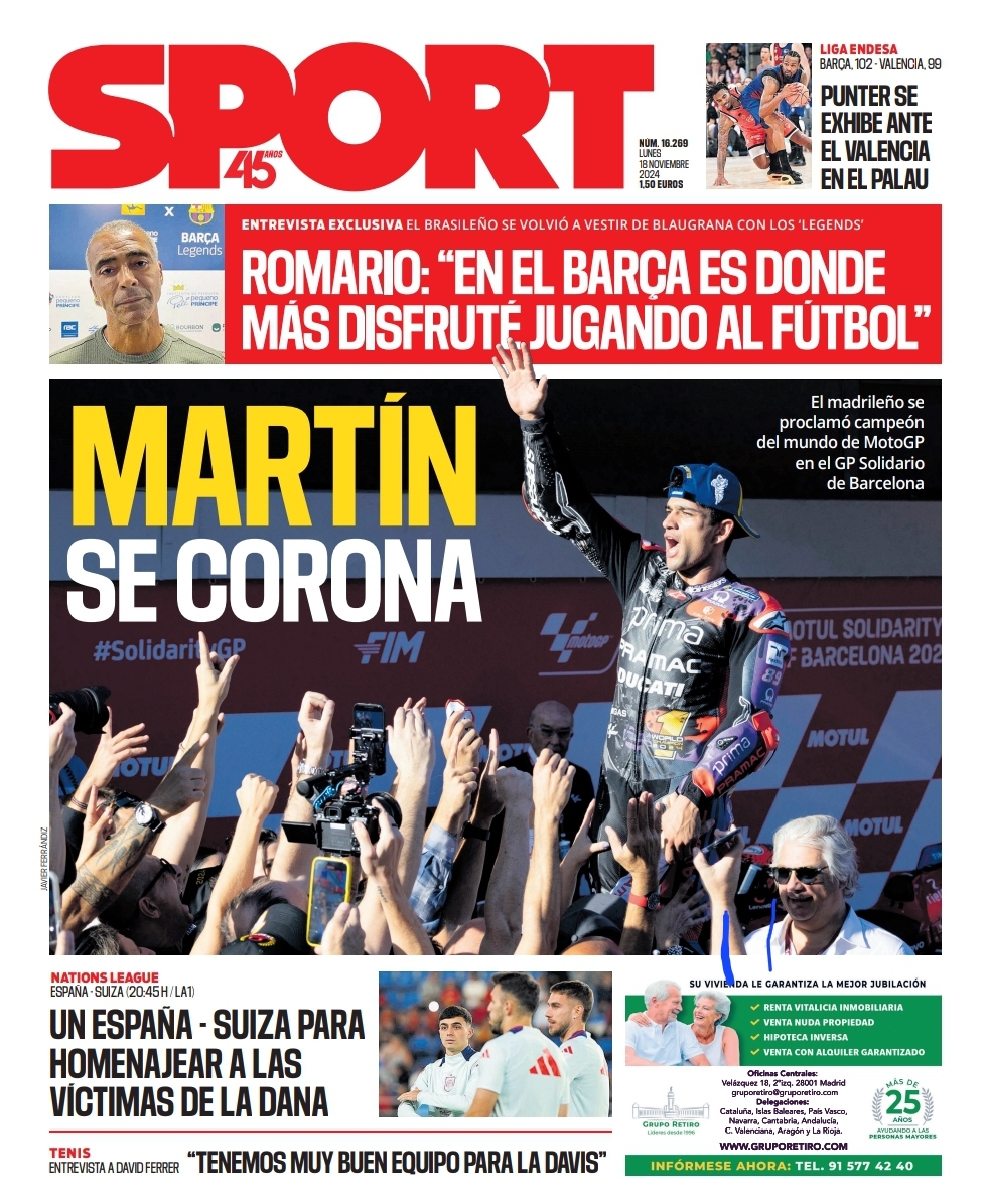Jorge Martín protagoniza las portadas deportivas del 18 de noviembre de 2024