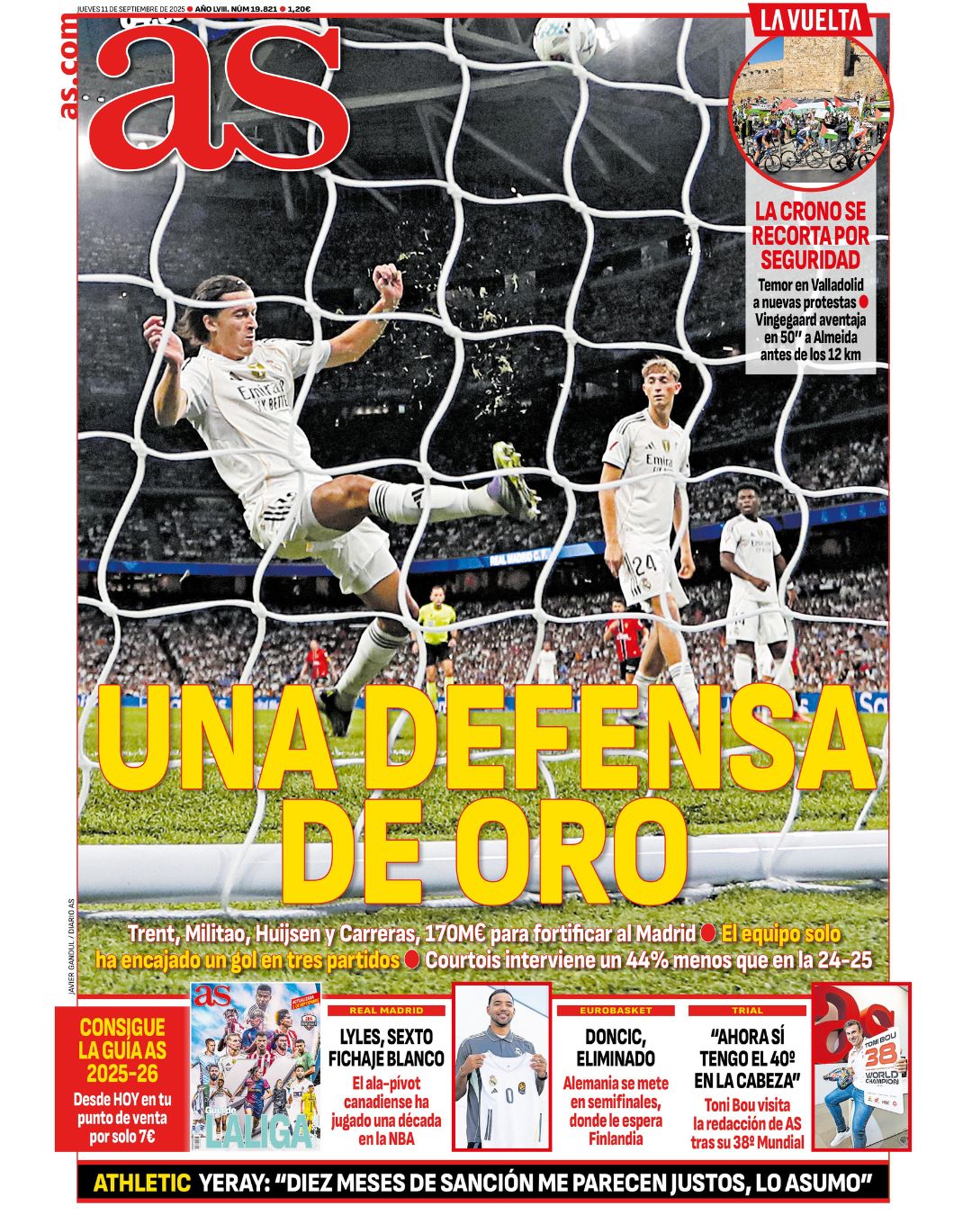 En su edición de este jueves, el diario AS destaca en portada el valor de mercado de la defensa titular del Real Madrid.