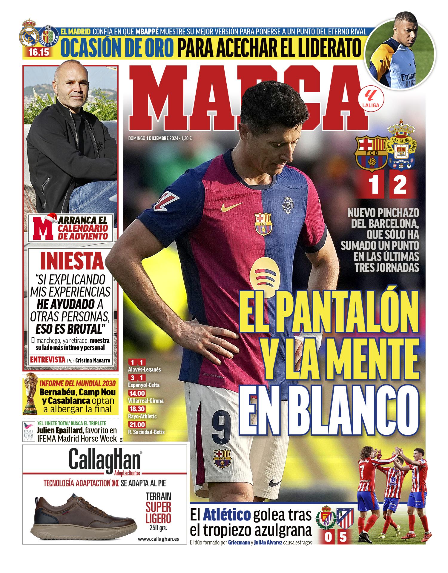 La derrota del Barça y el derbi madrileño, protagonistas de las portadas
