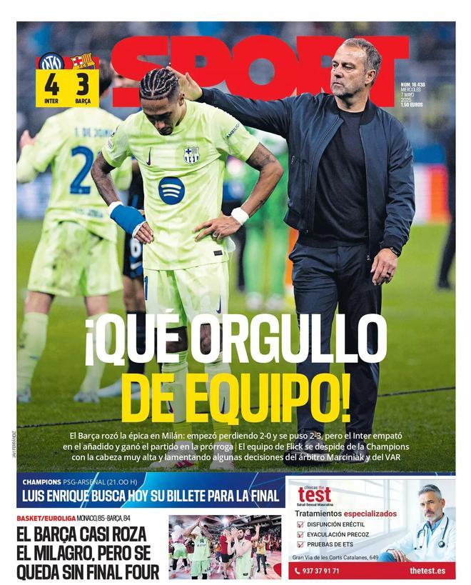 La eliminación del Barcelona en Champions frente al Inter de Milán protagoniza las portadas deportivas de este miércoles 7 de mayo de 2025.