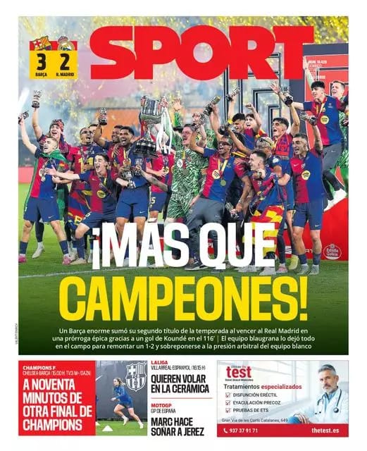 La final de la Copa del Rey entre FC Barcelona y Real Madrid copa las portadas de la prensa deportiva en España.