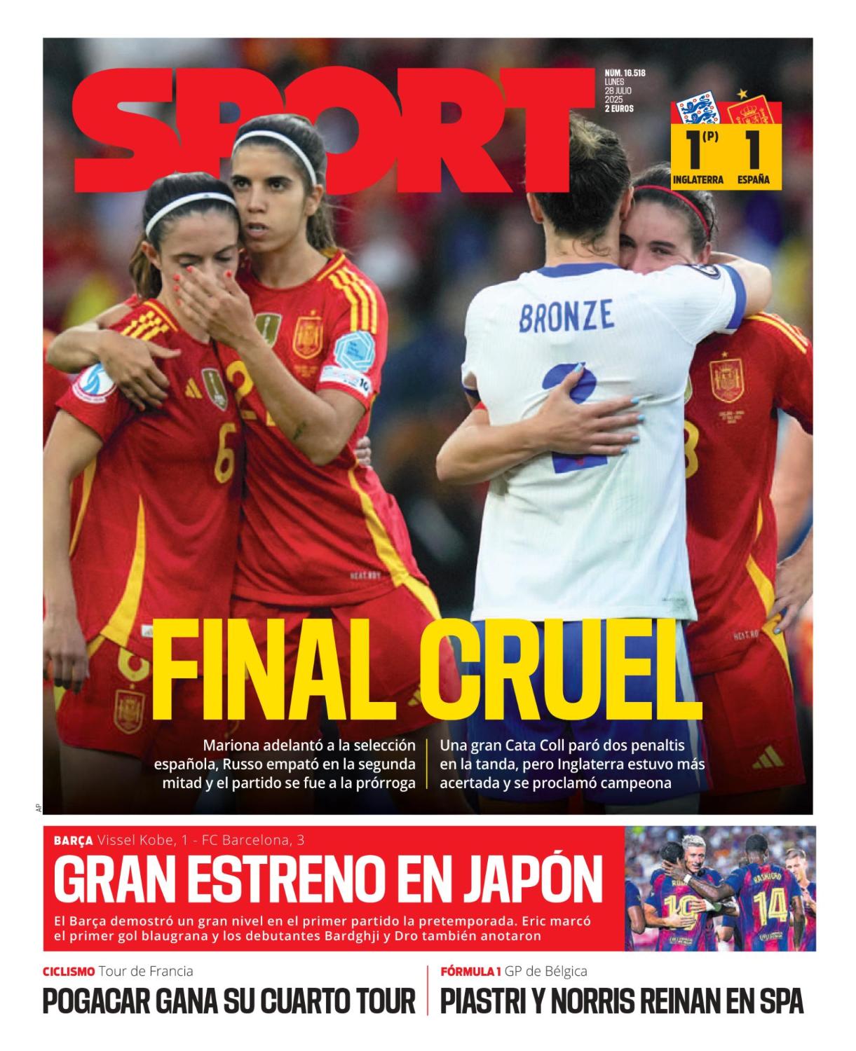 La final de la Eurocopa femenina y Saliba protagonizan las portadas