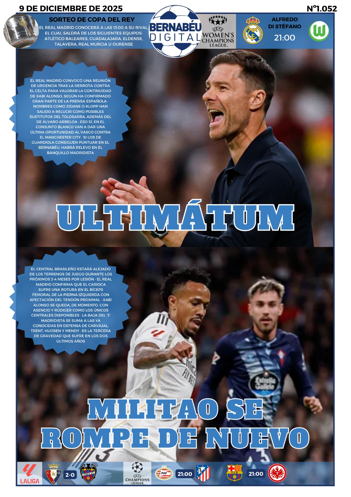 La lesión de Militao y el ultimátum a Xabi protagonizan la portada BD