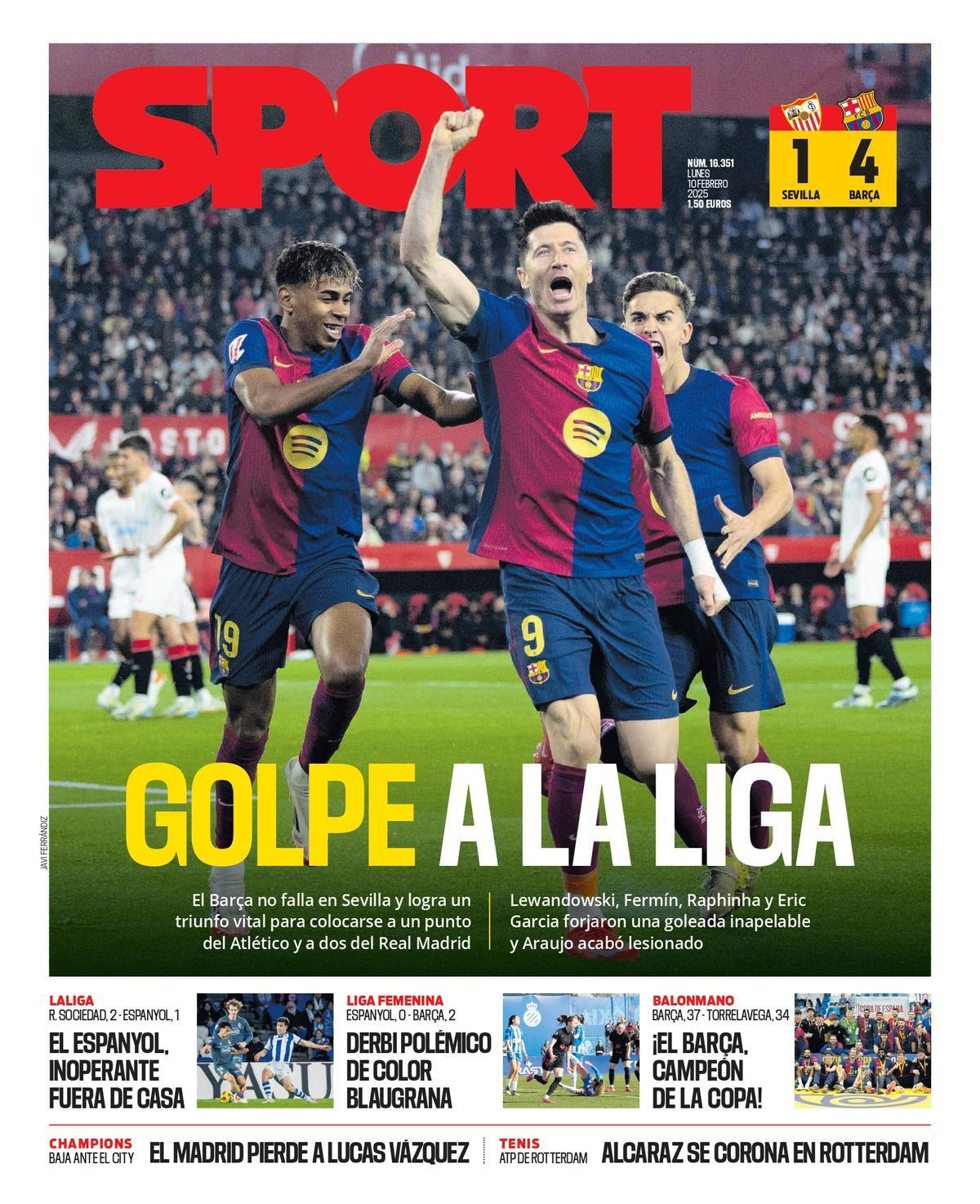 Este lunes 10 de febrero de 2025, las portadas deportivas se centran en la lucha por el título de liga y el mensaje de Carlo Ancelotti a sus jugadores durante el último derbi ante el Atlético.