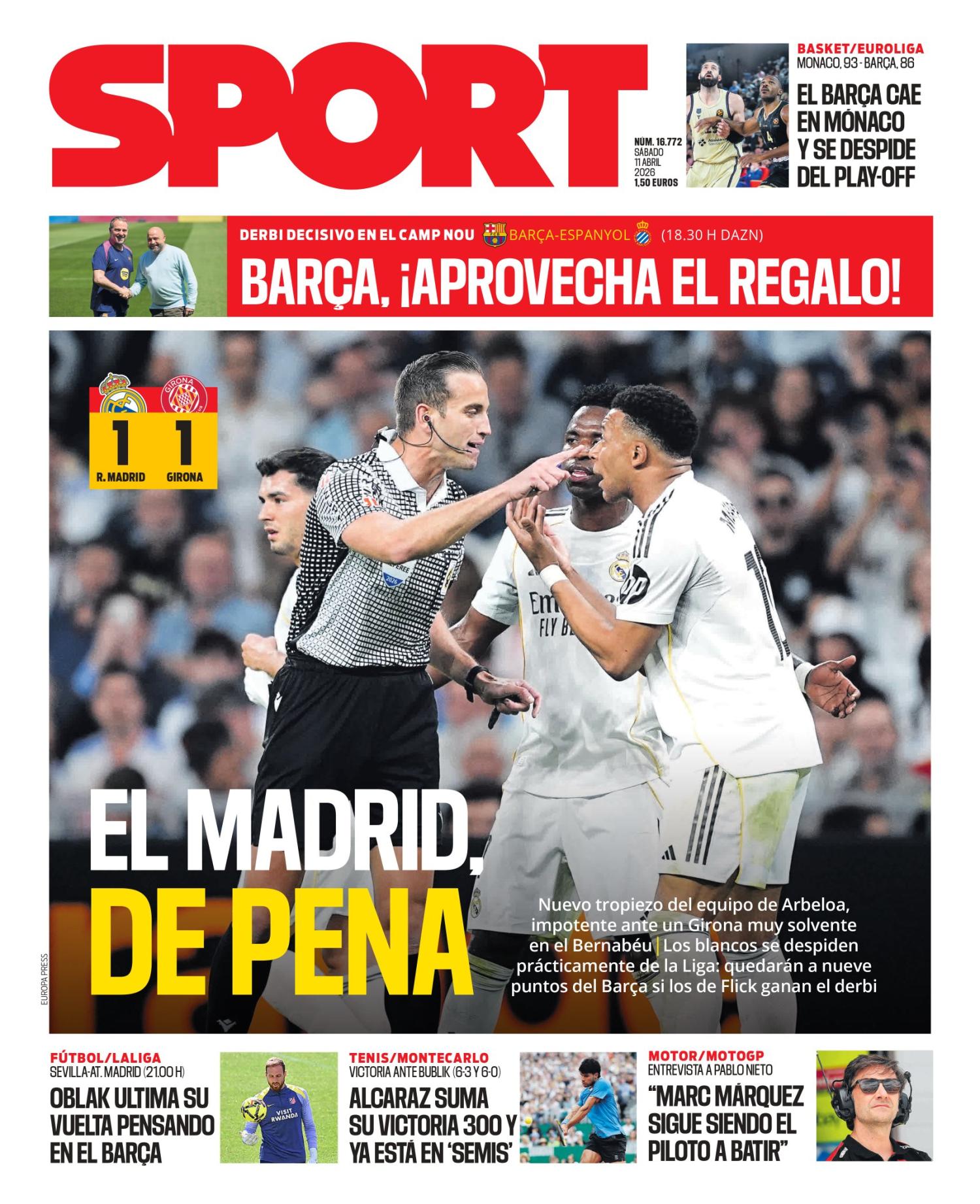 Sport pone como principal protagonista también a Mbappé y su enfrentamiento con el árbitro ya que se fue totalmente injusto con el '10' en varias jugadas del partido, aunque desde el medio culé lo enfocan como una manera de ridiculizar al jugador y al club madridista.