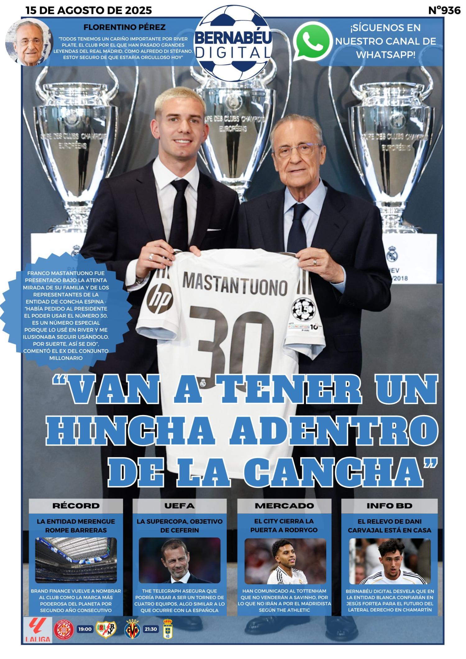 En la portada BD de este viernes destacamos el acto de presentación y la primera rueda de prensa de Franco Mastantuono como nuevo jugador del Real Madrid. Además, también hacemos referencia a la última INFO BD sobre Jesús Fortea.