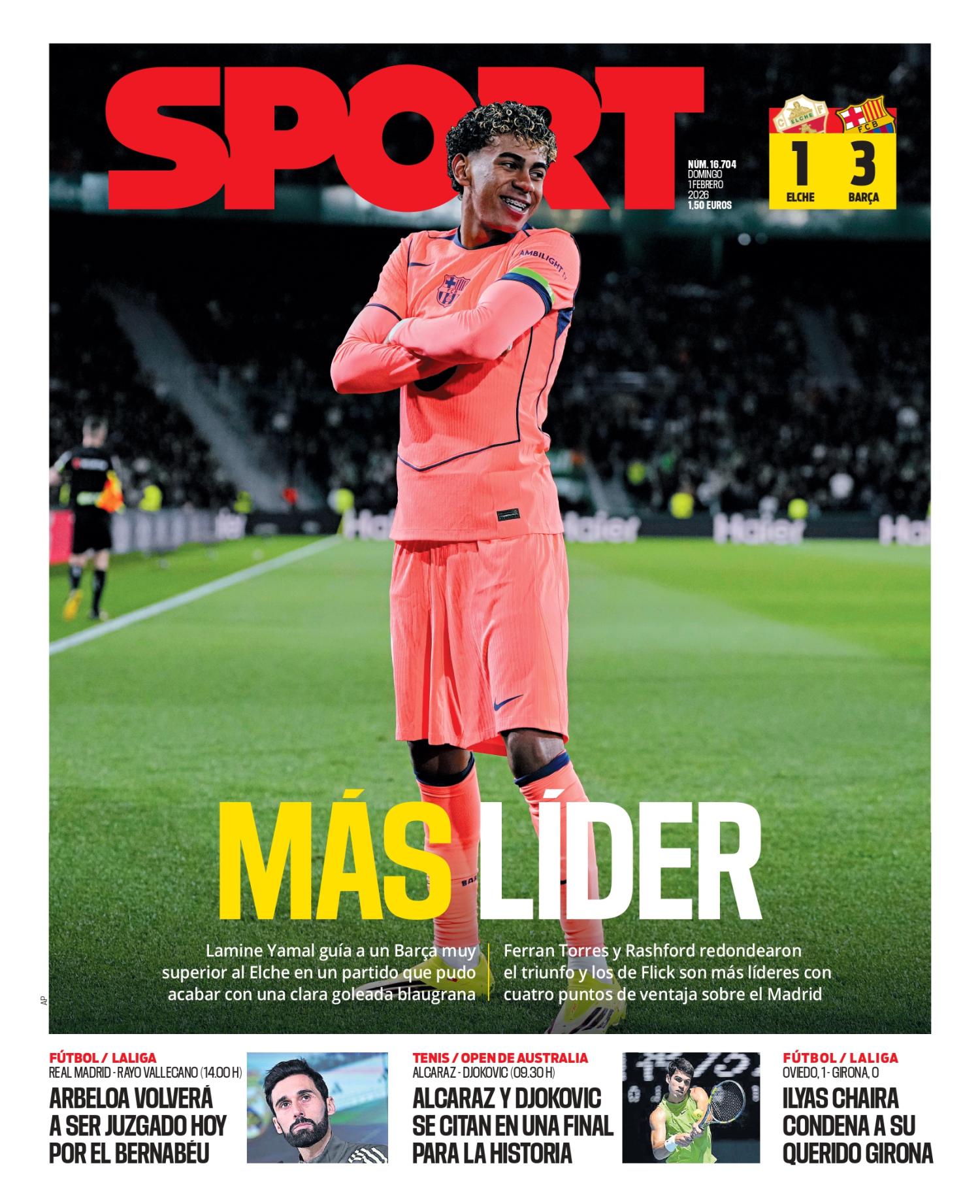 Sport saca como protagonista a Lamine Yamal, que ha guiado al Barcelona en la victoria ante el Elche por 1-3.