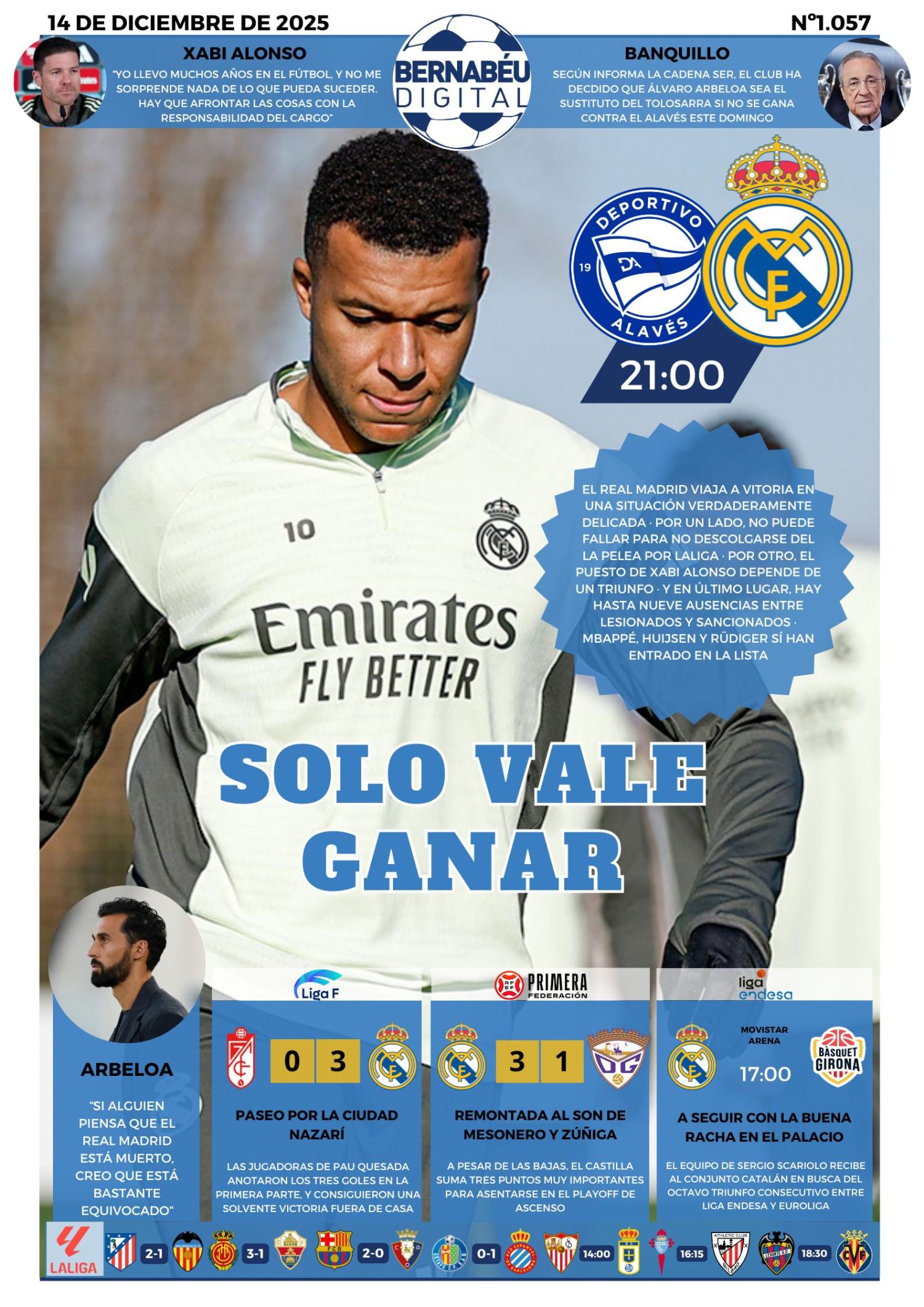 Bernabéu Digital destaca en su portada la previa del Alavés - Real Madrid, con las declaraciones de Xabi Alonso en rueda de prensa.