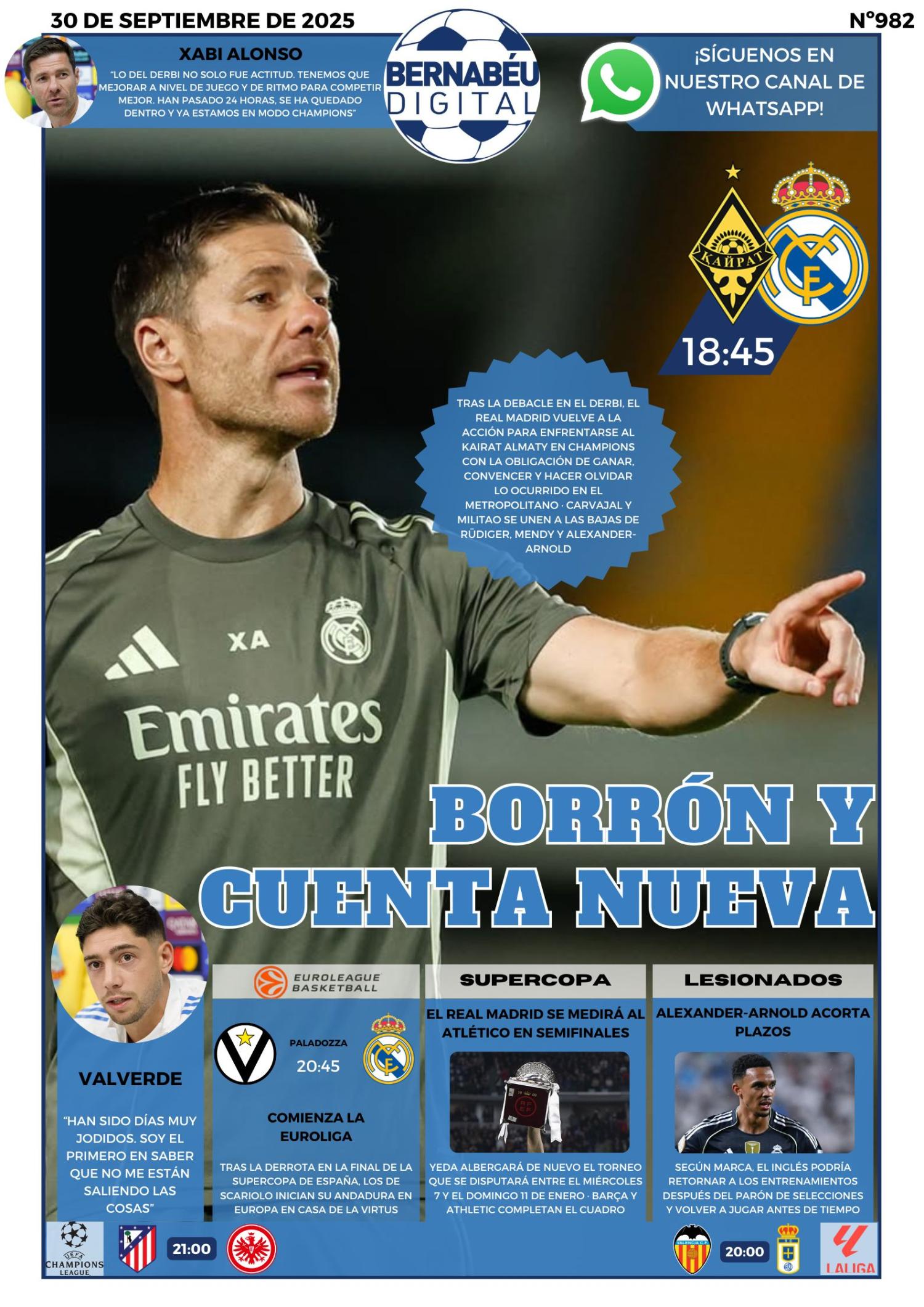 Para este martes 30 de septiembre, Bernabéu Digital destaca en su portada la previa del partido de Champions entre el Kairat Almaty y el Real Madrid en Kazajistán.
