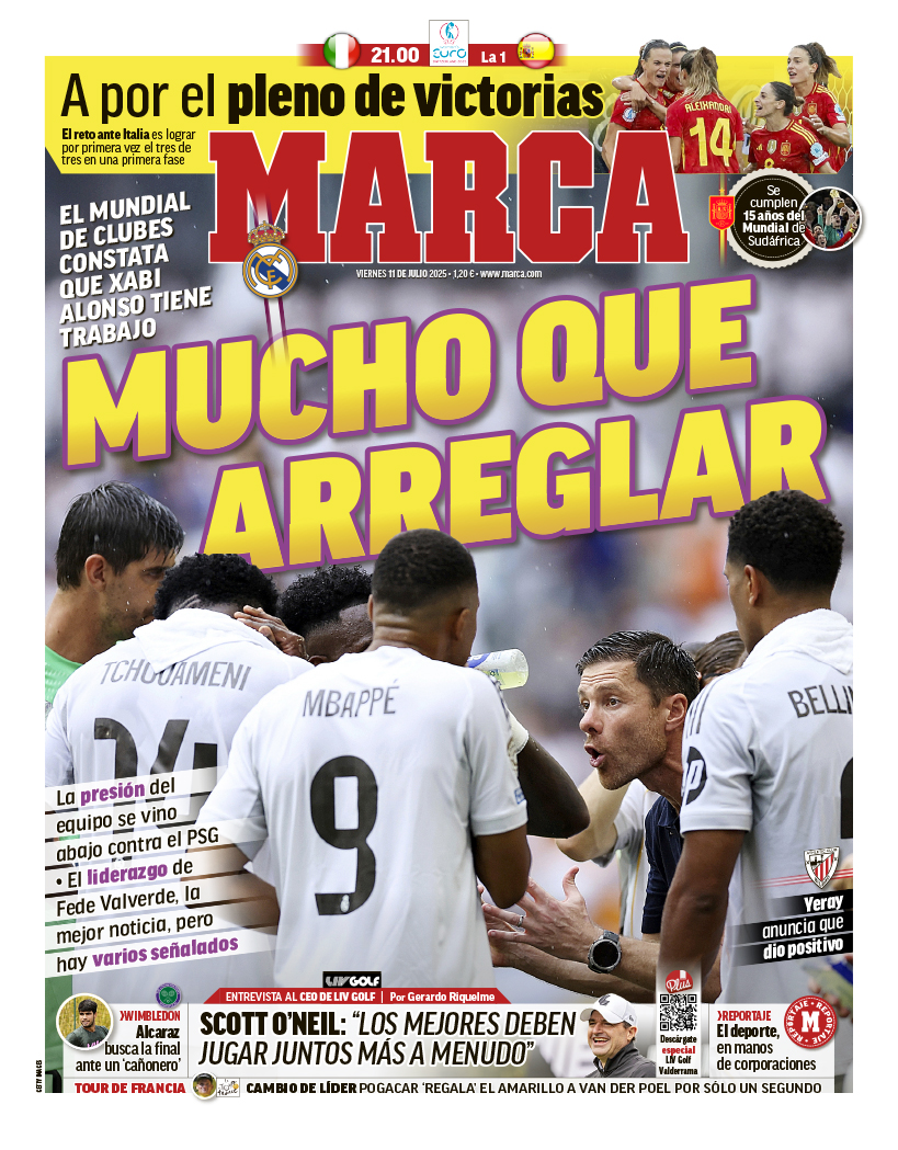 El diario Marca abre su portada del viernes con la crisis del Real Madrid tras la debacle ante el PSG.