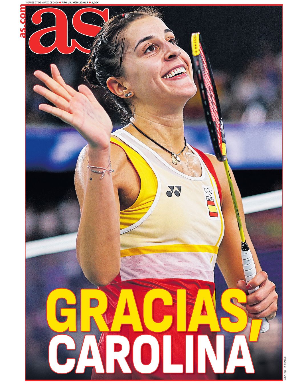 Por parte del AS, el diario saca en primera plana una foto sin ningún otro titular alrededor dejando el "gracias Carolina" como principal mensaje para apoyar a la jugadora y campeona olímpica en el final de su carrera.