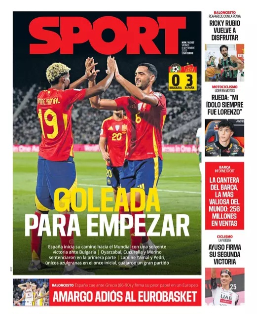 La victoria de España frente a Bulgaria copa las portadas deportivas de este viernes 5 de septiembre de 2025.