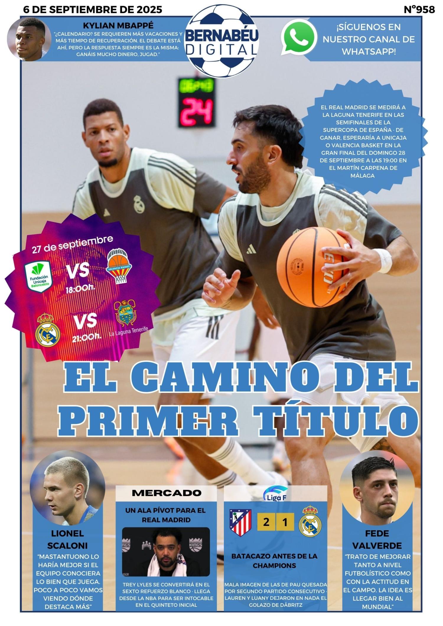 En la portada del sábado 6 de septiembre de 2026, en Bernabéu Digital destacamos la hoja de ruta de Sergio Scariolo en la Supercopa de España. El entrenador italiano podría sumar su primer título de la temporada con el Real Madrid en tan solo dos partidos.