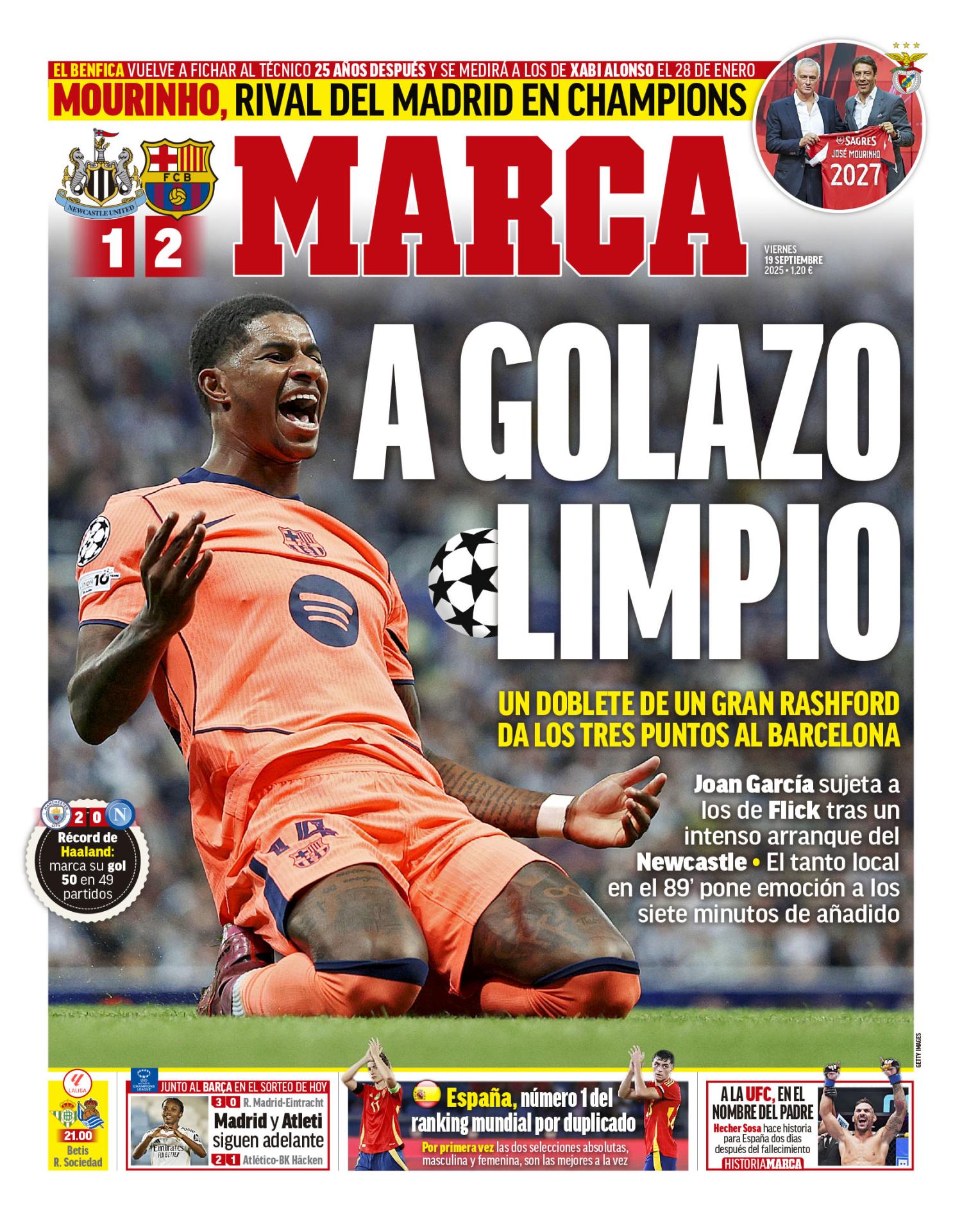 La victoria del Barça ante el Newcastle, entre otros temas, ocupa las portadas deportivas de este viernes 19 de septiembre de 2025.