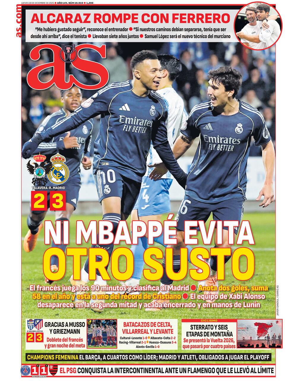 La victoria del Real Madrid contra el Talavera, en las portadas deportivas