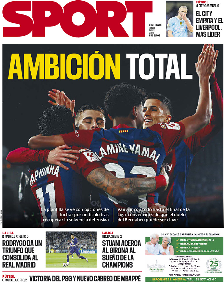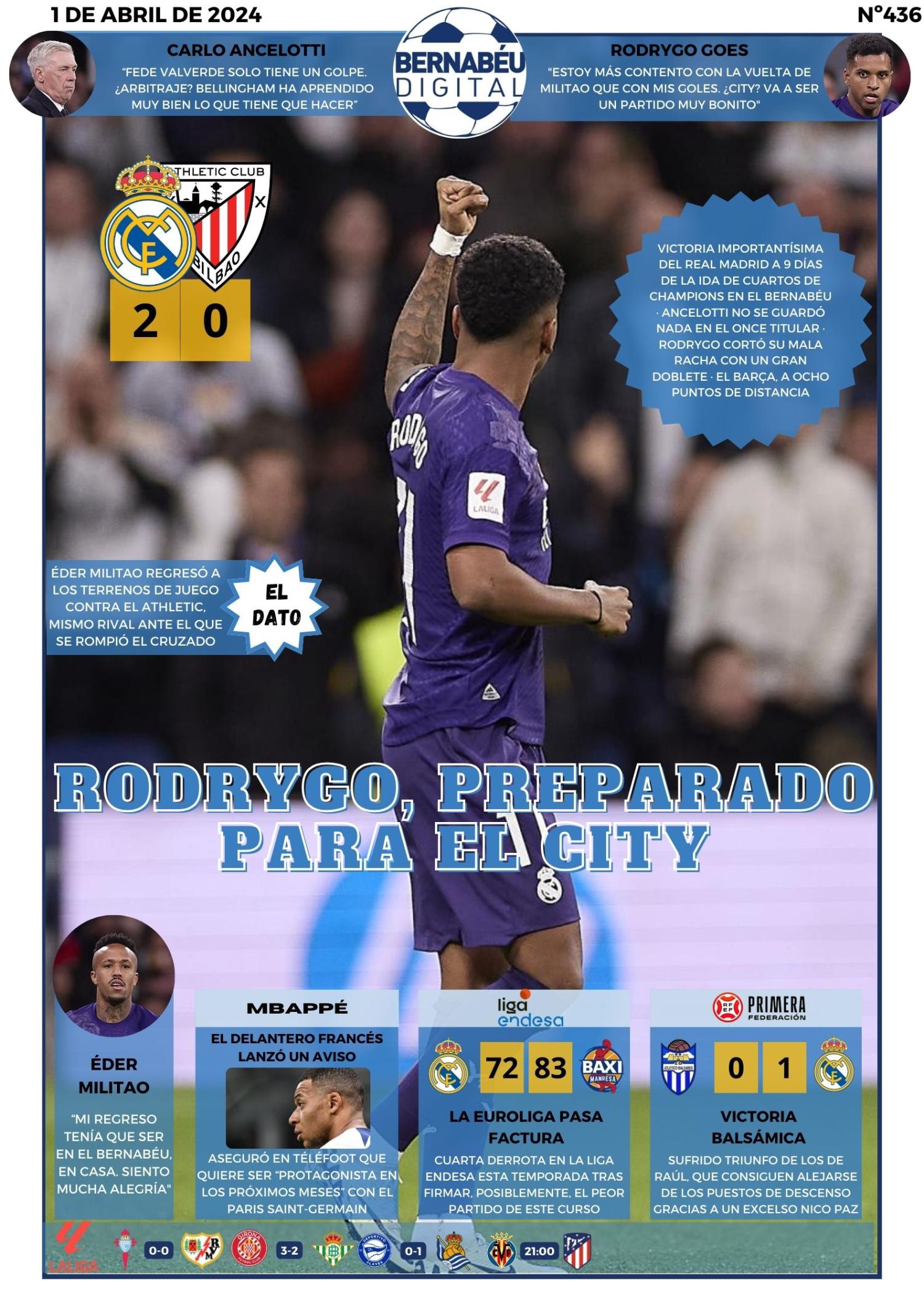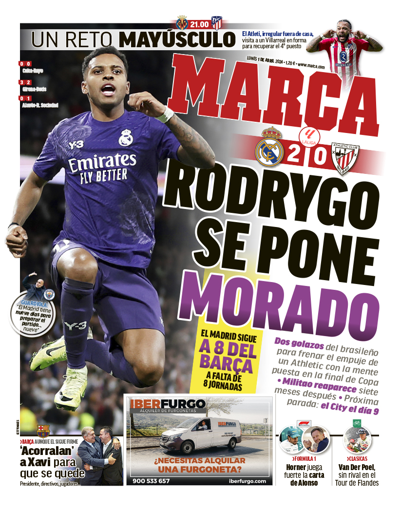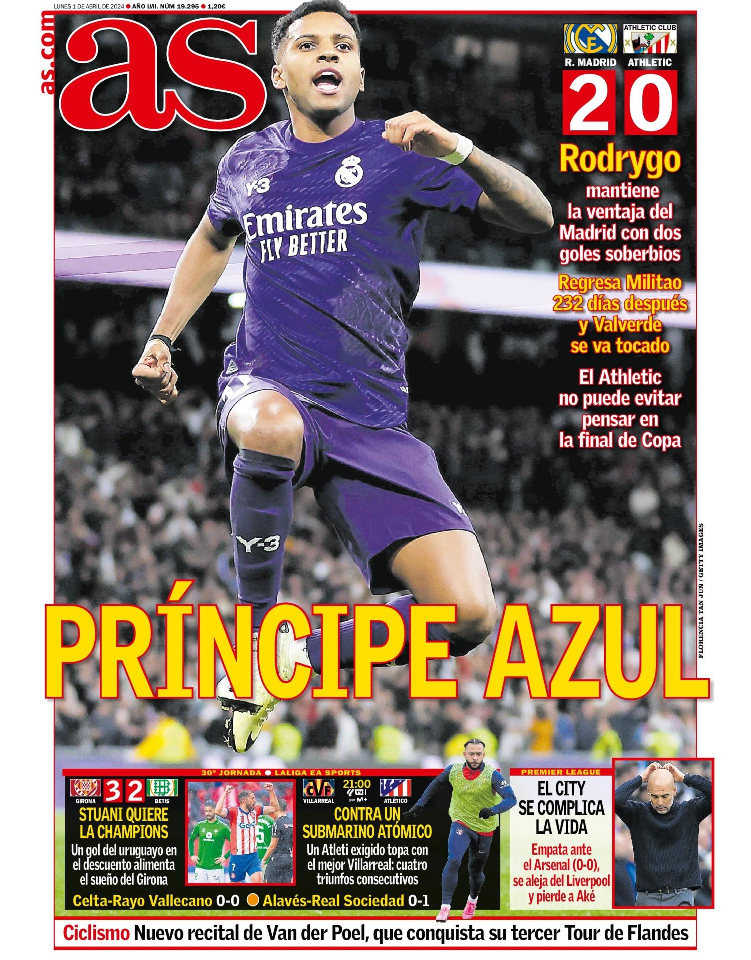 La victoria del Real Madrid frente al Athletic en las portadas del 1 de abril de 2024