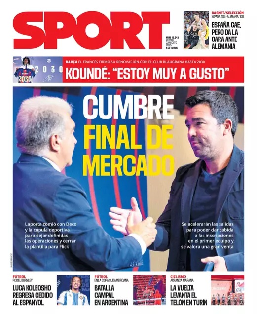 Las portadas deportivas de este viernes 22 de agosto de 2025: Huijsen, Wharton...