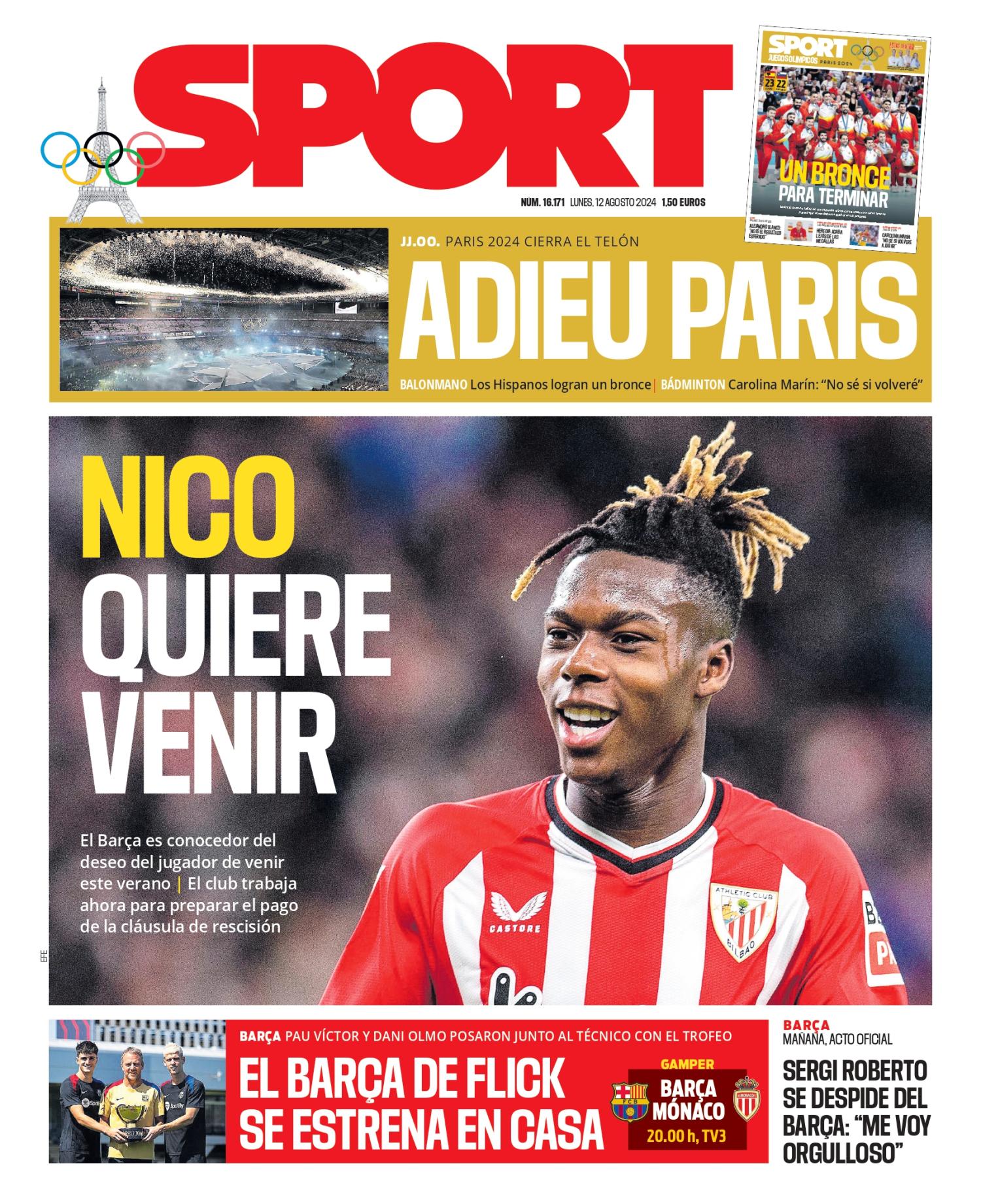 Las portadas deportivas del 12 de agosto de 2024.