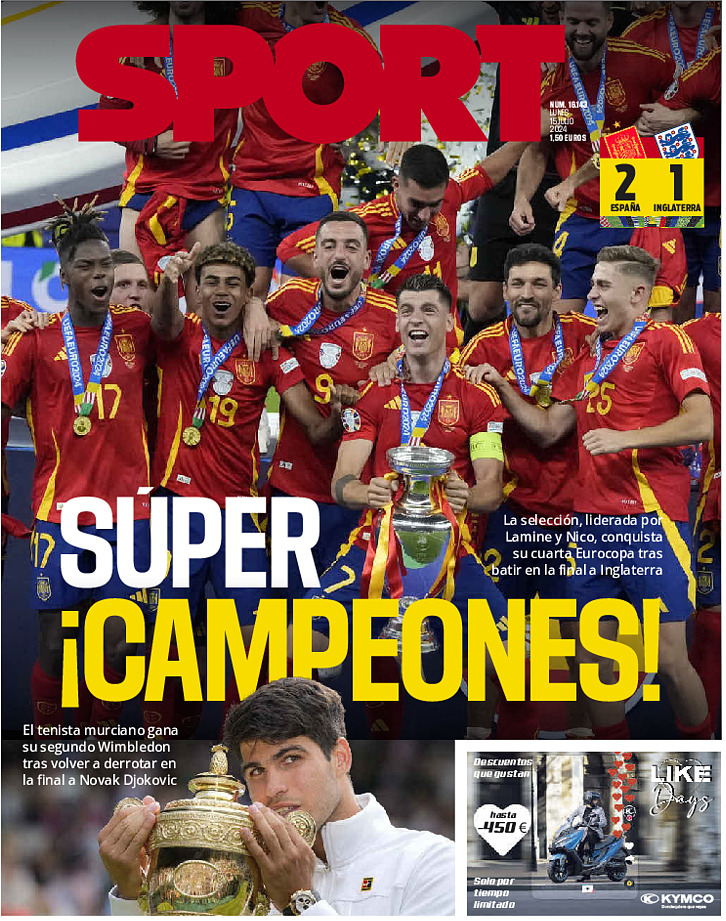 Las portadas deportivas del 15 de julio de 2024