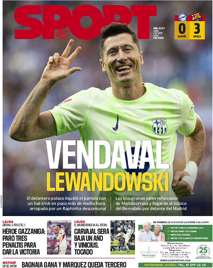 Las portadas deportivas del 7 de octubre de 2024