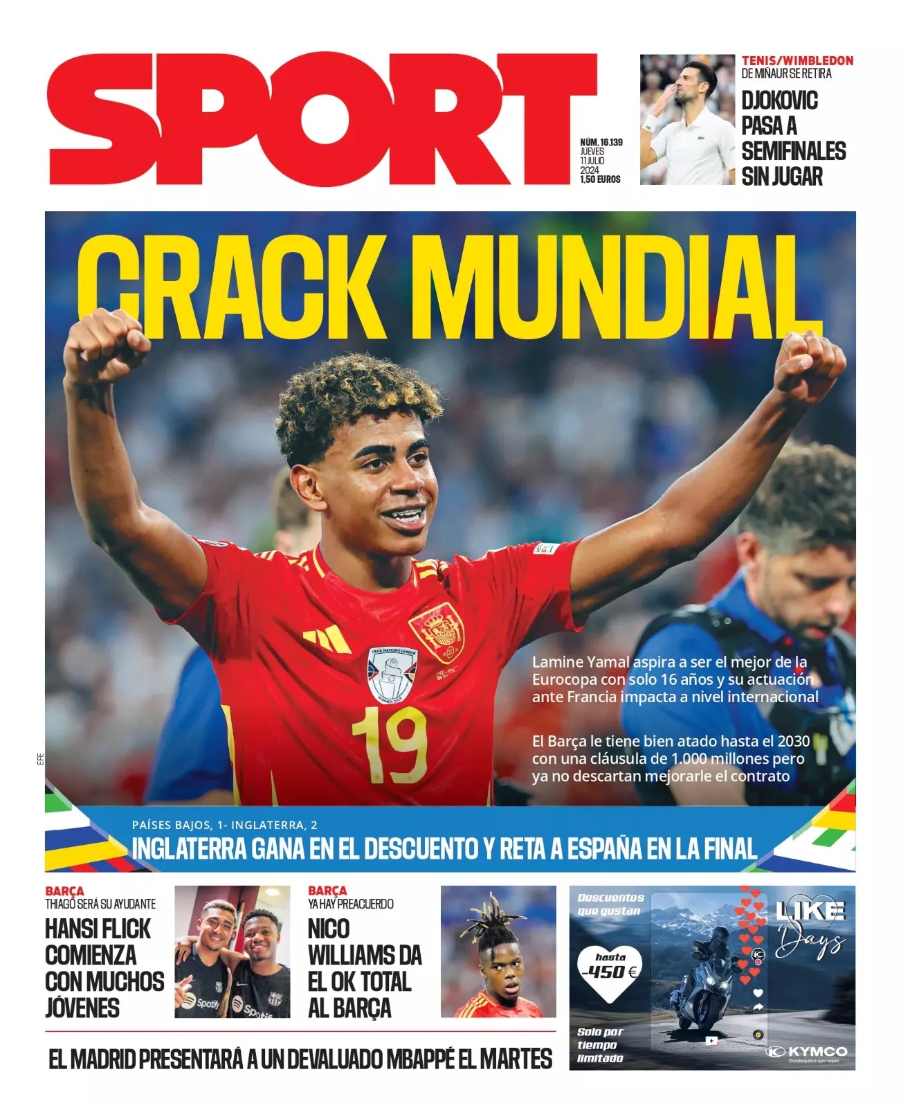 Las portadas deportivas del jueves 11 de julio de 2024.