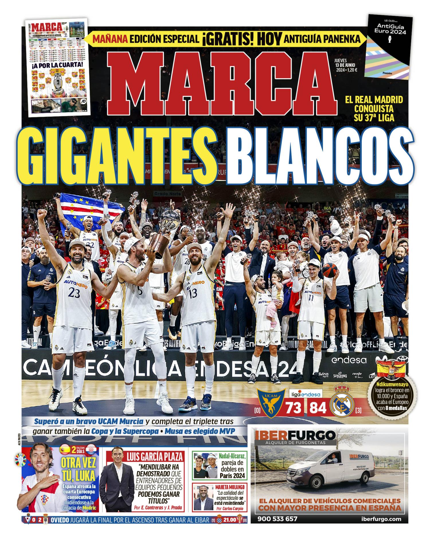 Las portadas deportivas del jueves 13 de junio de 2024.