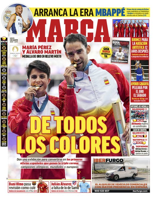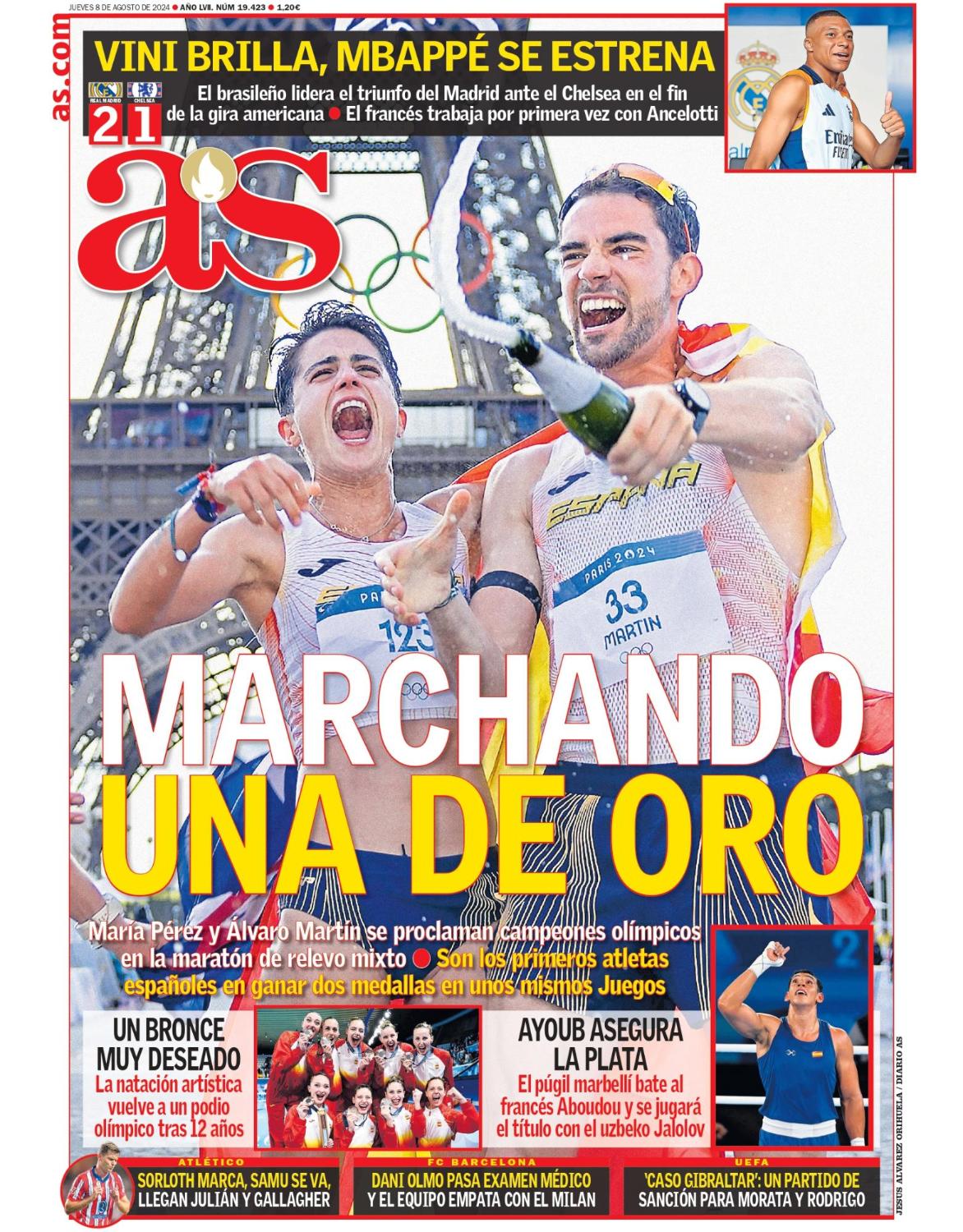 Las portadas deportivas del jueves 8 de agosto de 2024
