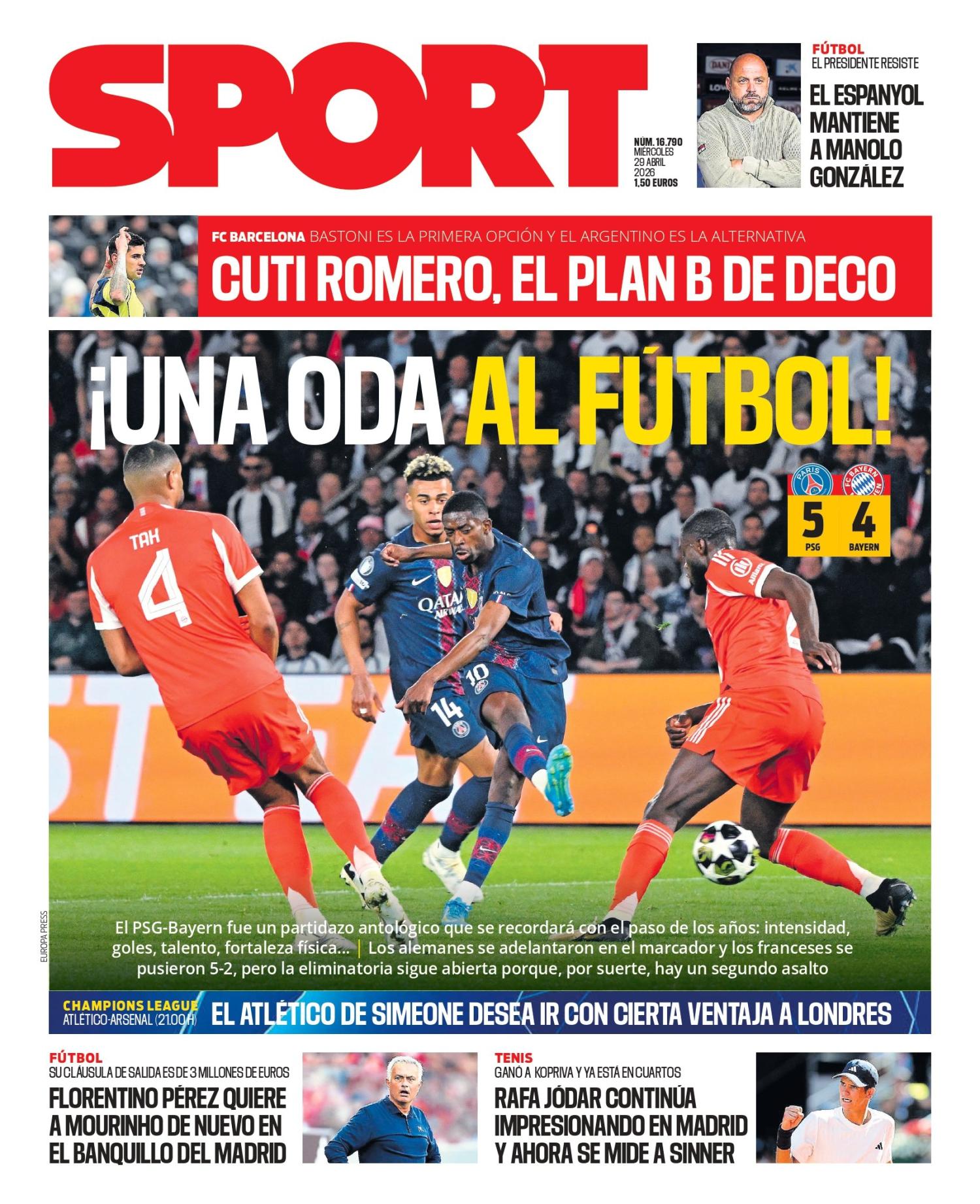 Sport pone como principal protagonista el inolvidable partidazo que se vivió anoche en el cual se llegaron a marcar hasta 9 goles, cinco por parte del PSG y cuatro del lado del Bayern Munich, algo fue que histórico y en la Champions League.