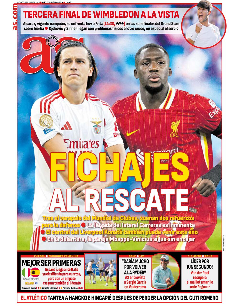 La portada del viernes del diario AS viene protagonizada por Álvaro Carreras e Ibrahima Konaté, que podrían convertirse en nuevos jugadores del Real Madrid.