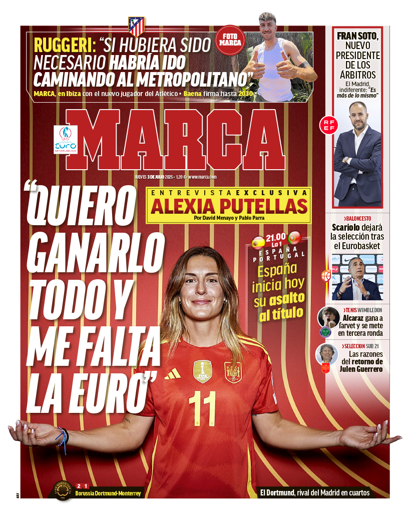 En su edición de este jueves, la portada de Marca abre con una entrevista exclusiva a Alexia Putellas.