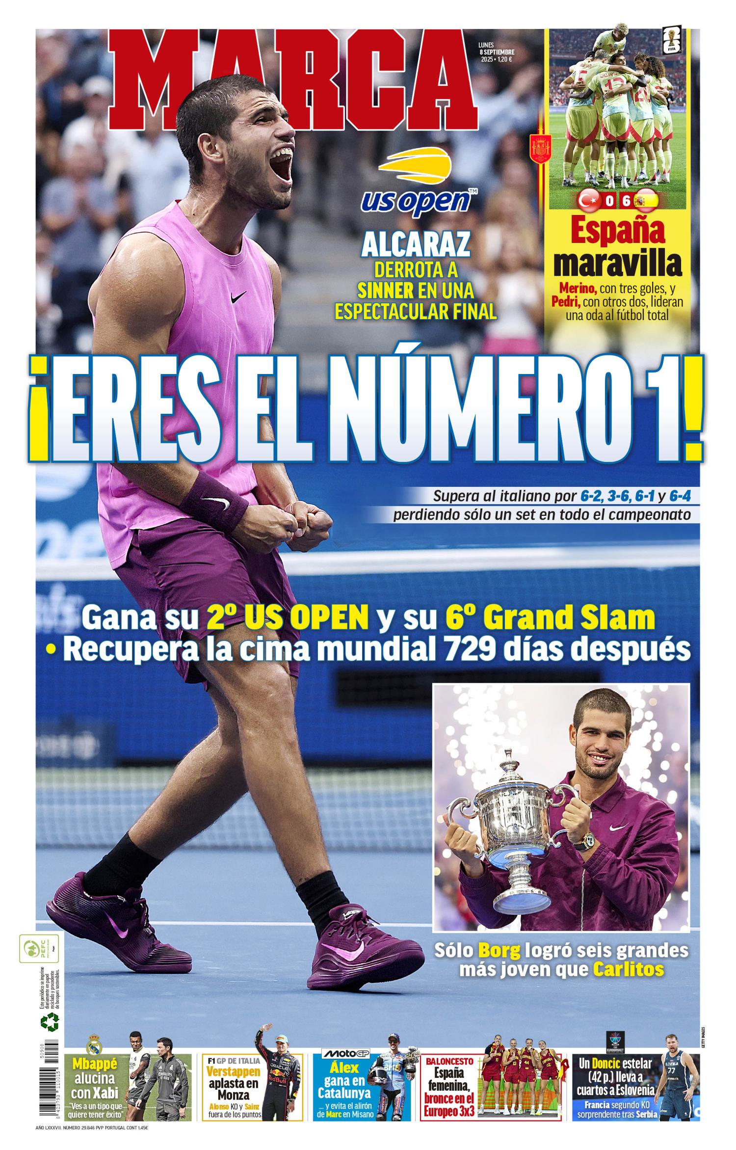 Marca destaca en portada la victoria de Alcaraz y las declaraciones bomba de Mbappé