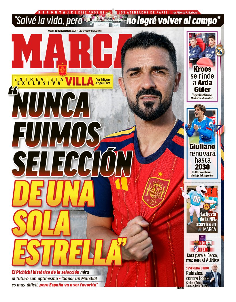 La portada de hoy del diario Marca viene protagonizada por una entrevista exclusiva con David Villa.