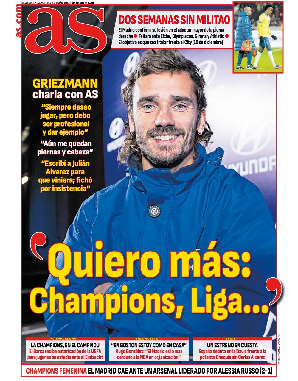 Mastantuono y el Atlético, protagonistas de las portadas deportivas