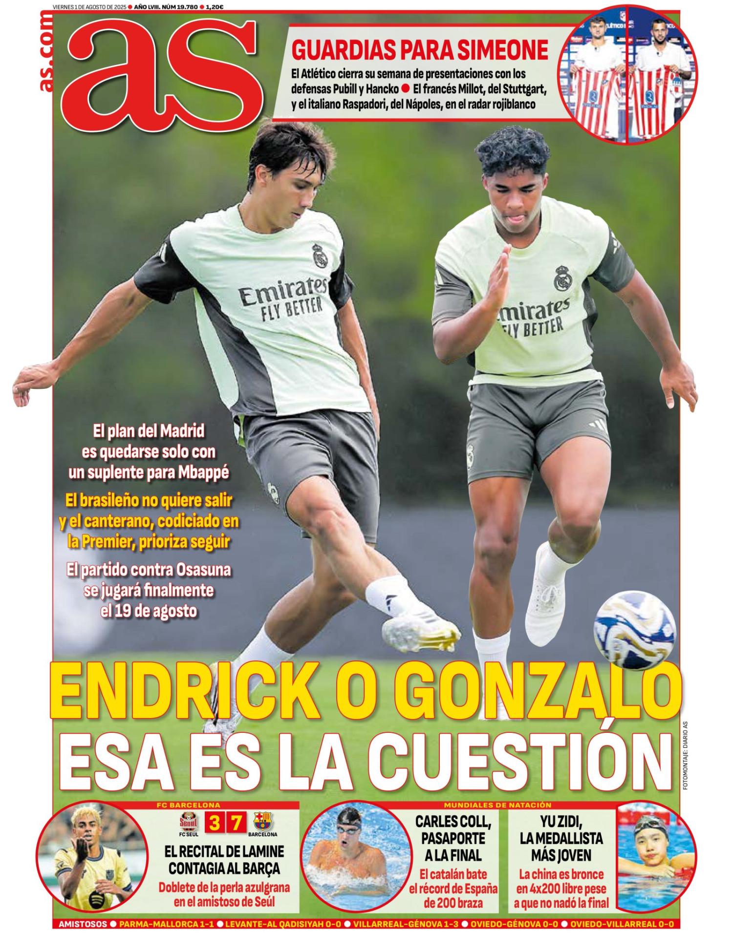 Mastantuono y Endrick protagonizan las portadas deportivas de hoy