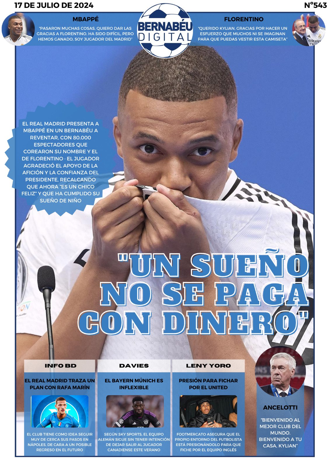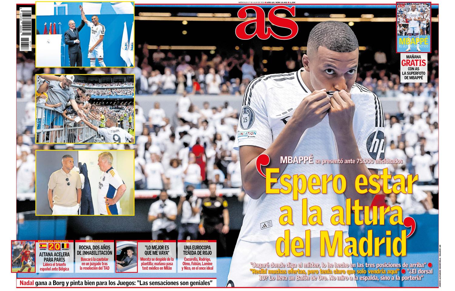 Mbappé copa la portadas deportivas del 17 de julio de 2024.