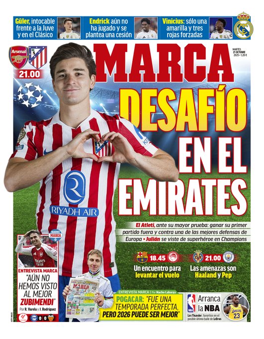 Mbappé, Güler, Vinicius y Endrick, protagonistas en las portadas deportivas