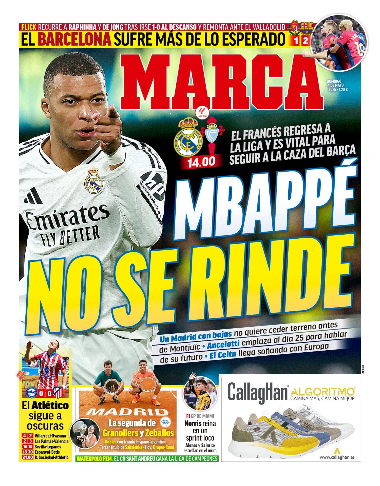 "Mbappé no se rinde": el Real Madrid - Celta, en la portada de Marca