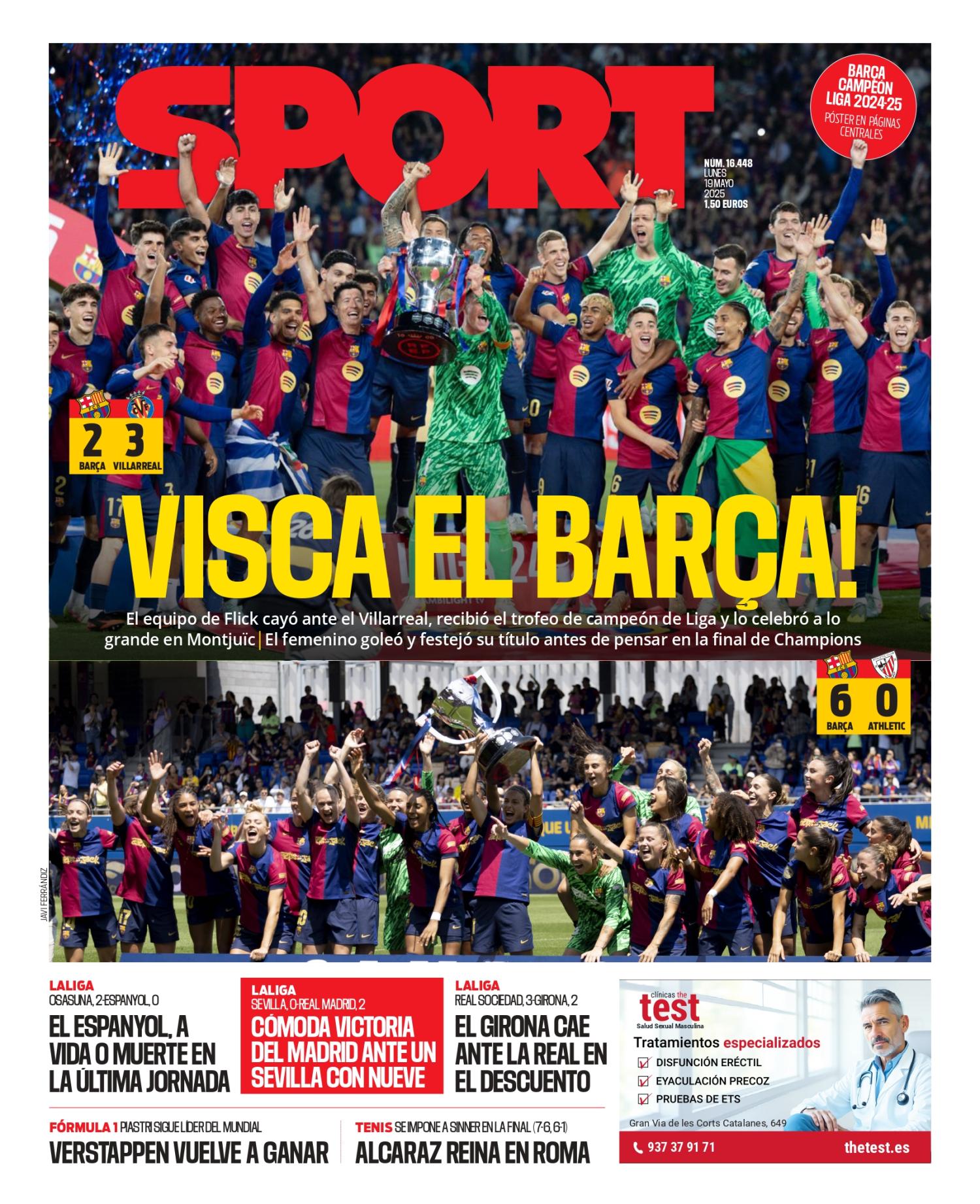 Kylian Mbappé, Carlos Alcaraz y el FC Barcelona protagonizan las portadas deportivas del 19 de mayo de 2025.